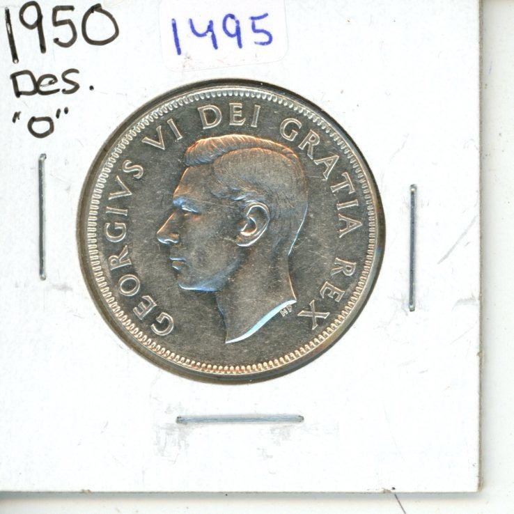 1950 silver Design 0 Canadian Fifty Cents.