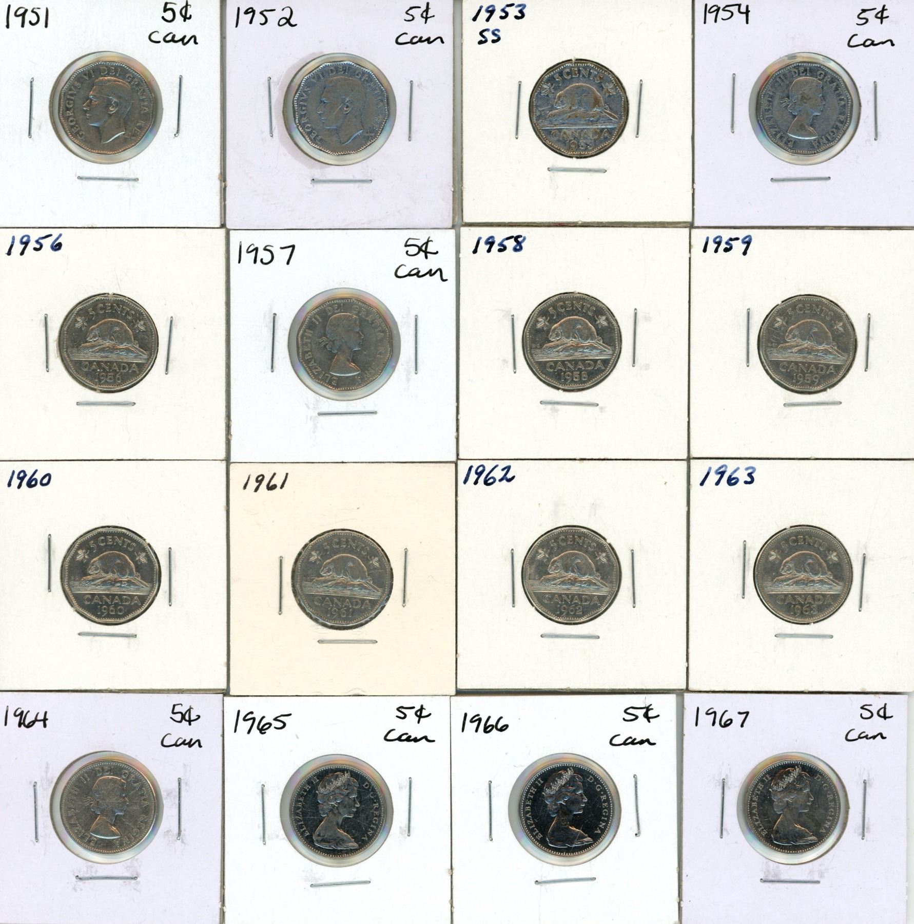 1951-1967 Canadian Silver Five Cents.