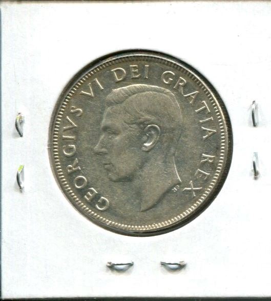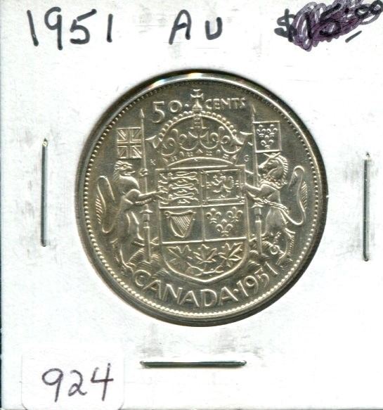1951 Canadian Silver 50 Cents. AU-50. Nice.