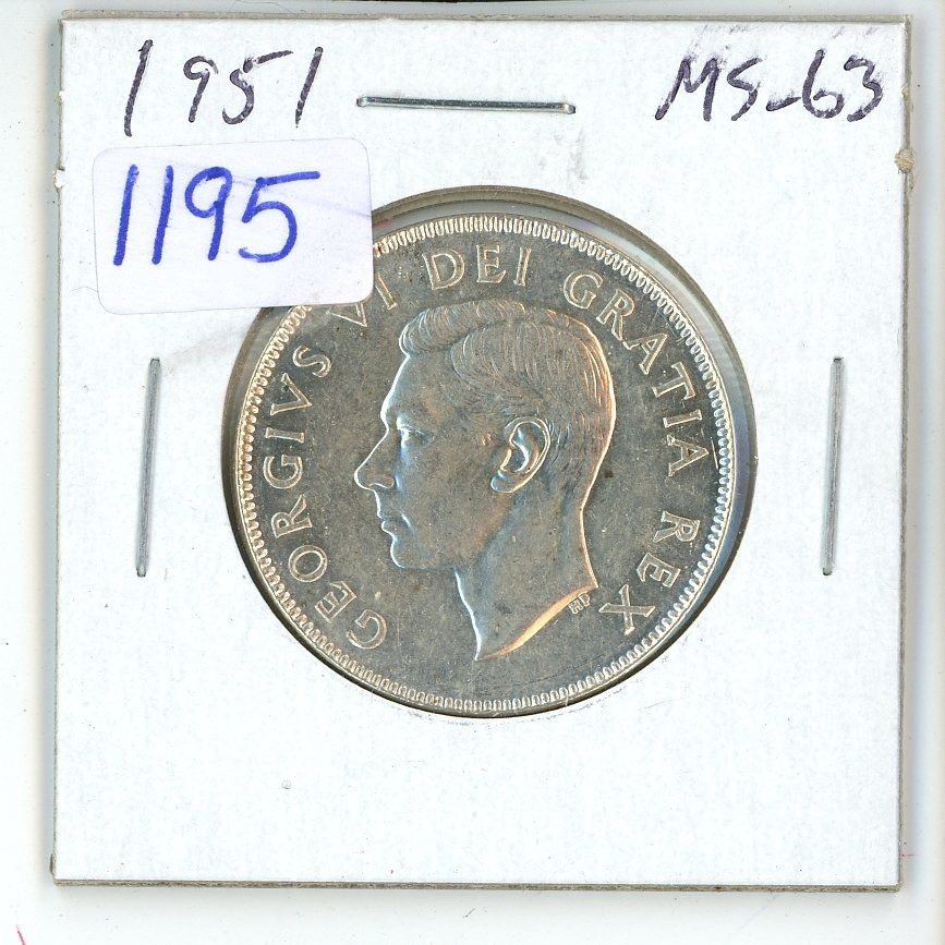 1951 Canadian Silver 50 Cents. MS-63. Nice.