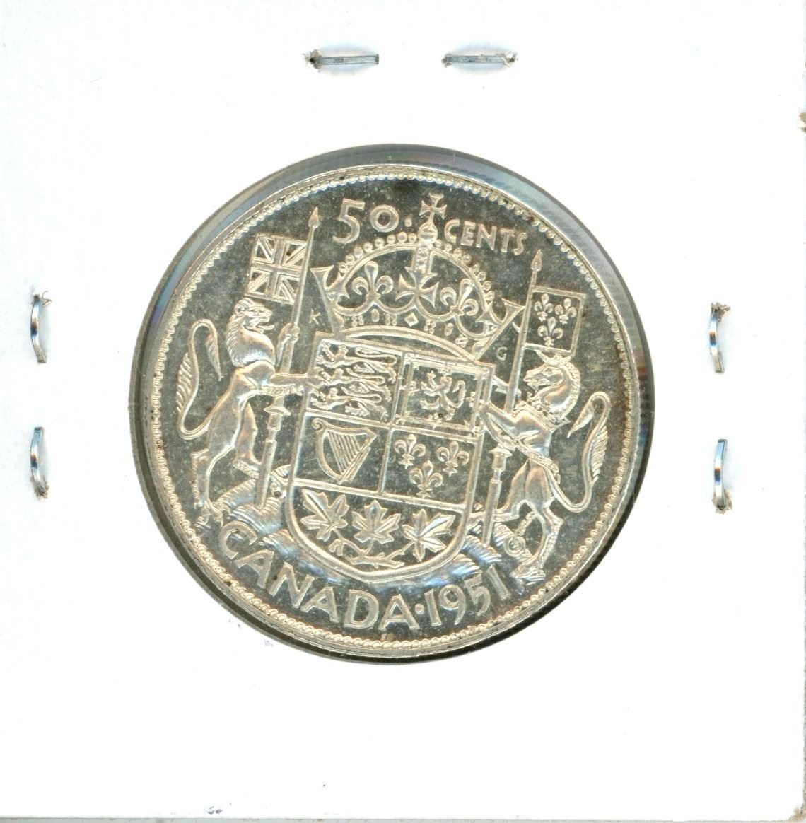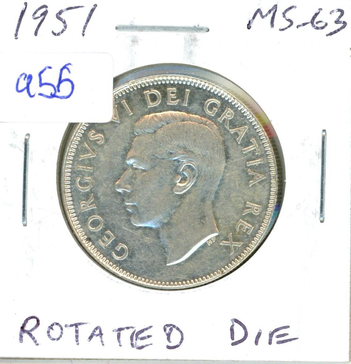 1951 Canadian Silver 50 Cents. MS-63. Rotated Die.