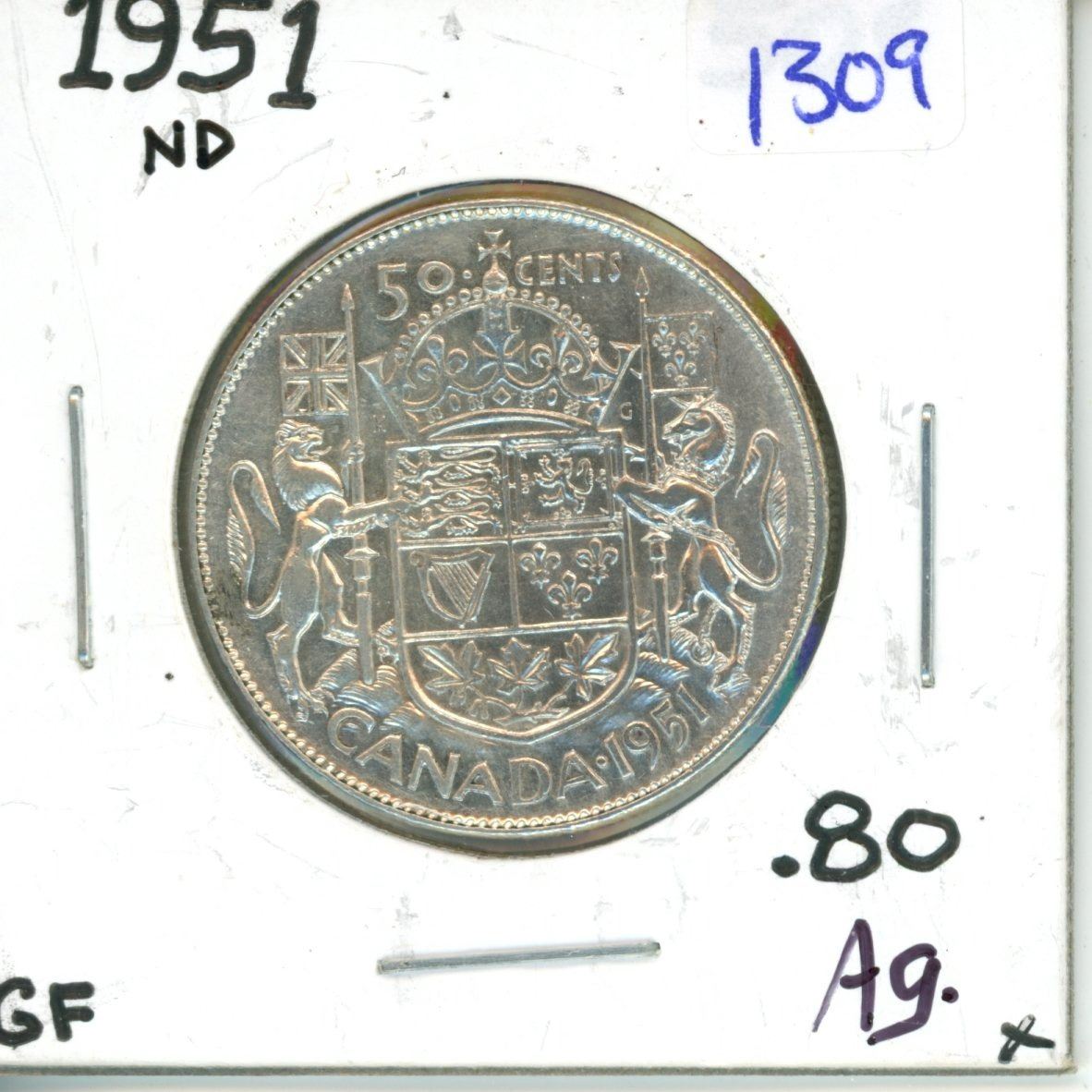 1951 Canadian silver 50 cent coin