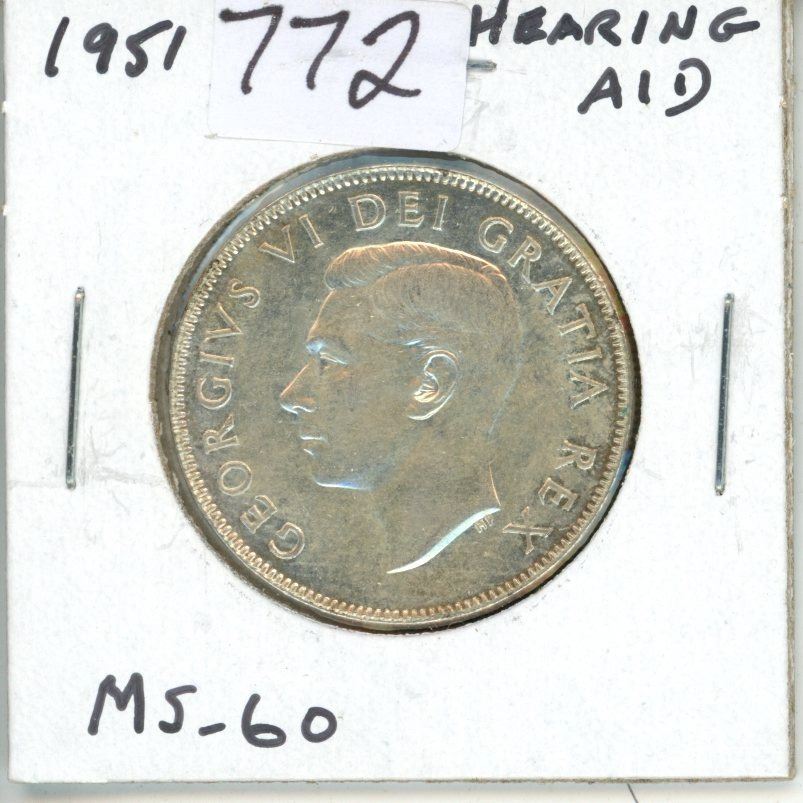 1951 Hearing Aid Silver 50 Cents. MS-60. Nice.