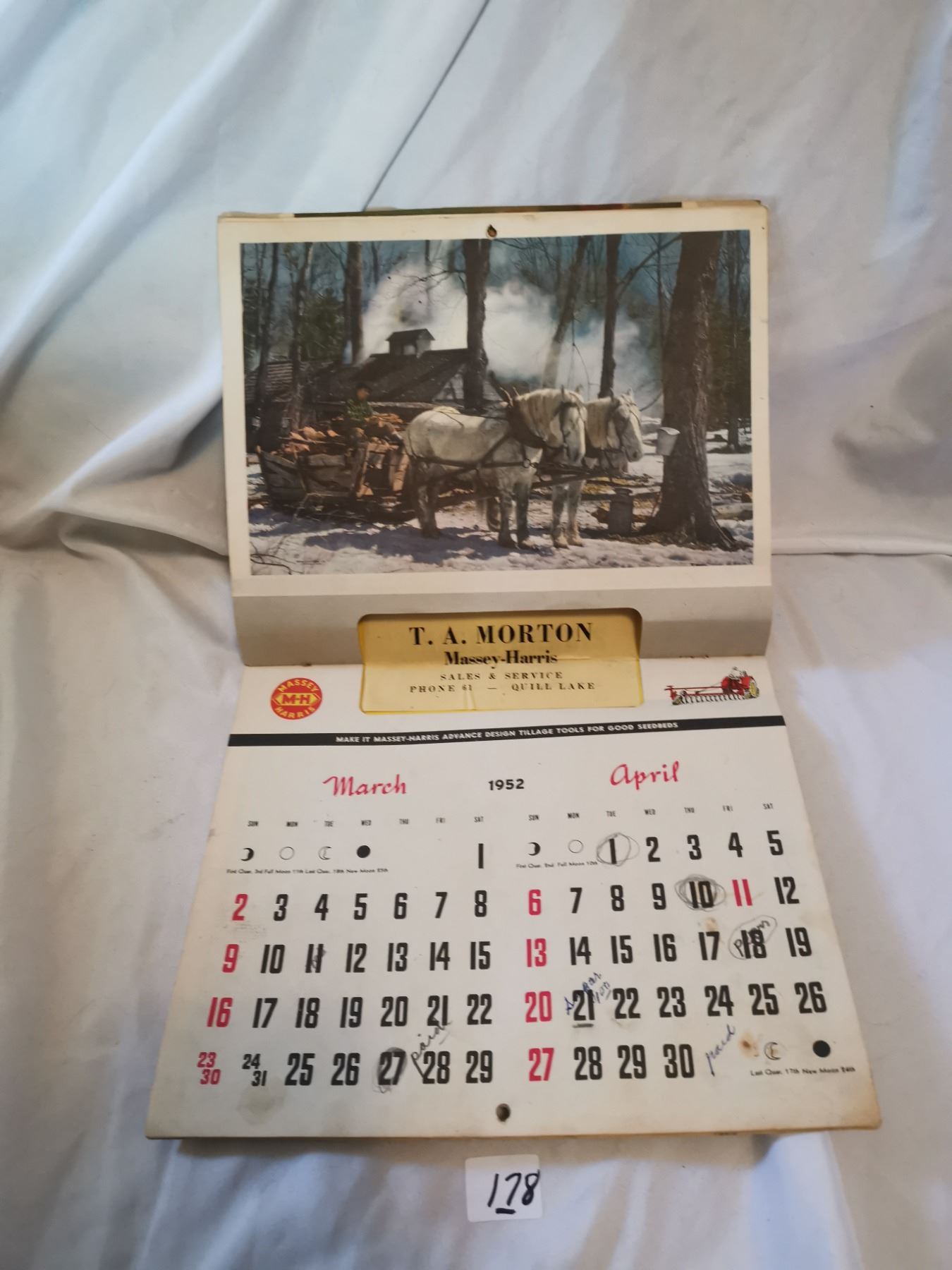 1951 Massey Harris Calendar – Quill Lake, SK