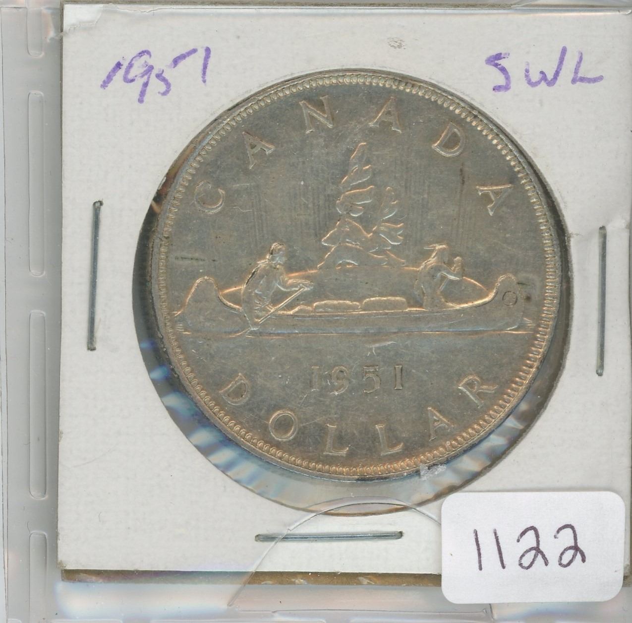 1951 SHORT WATER LINES CANADA SILVER DOLLAR