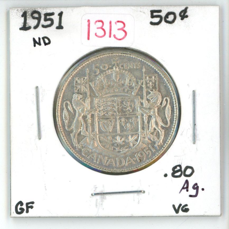 1951 canadian silver half-dollar(GF-.80AG)-VG