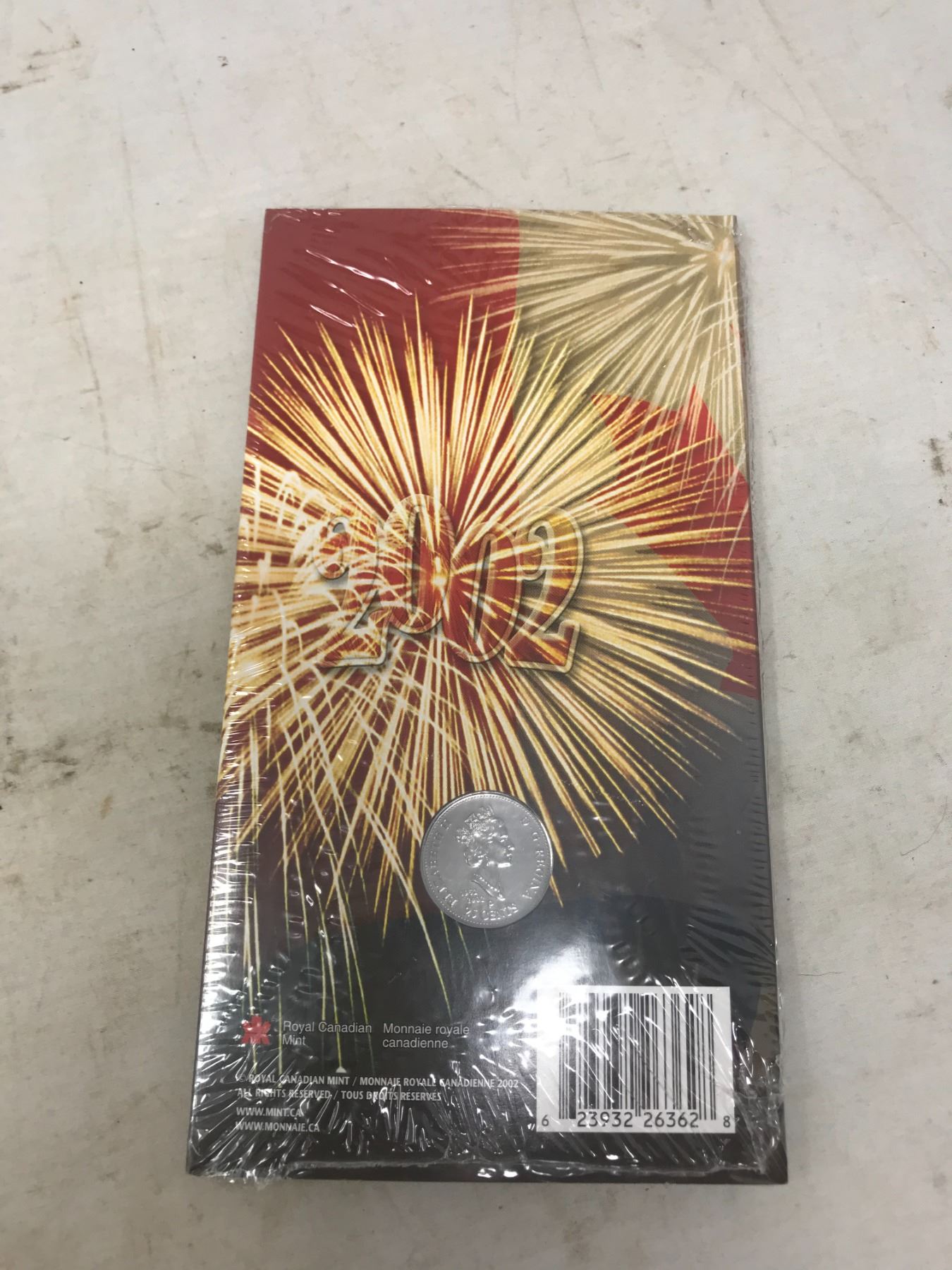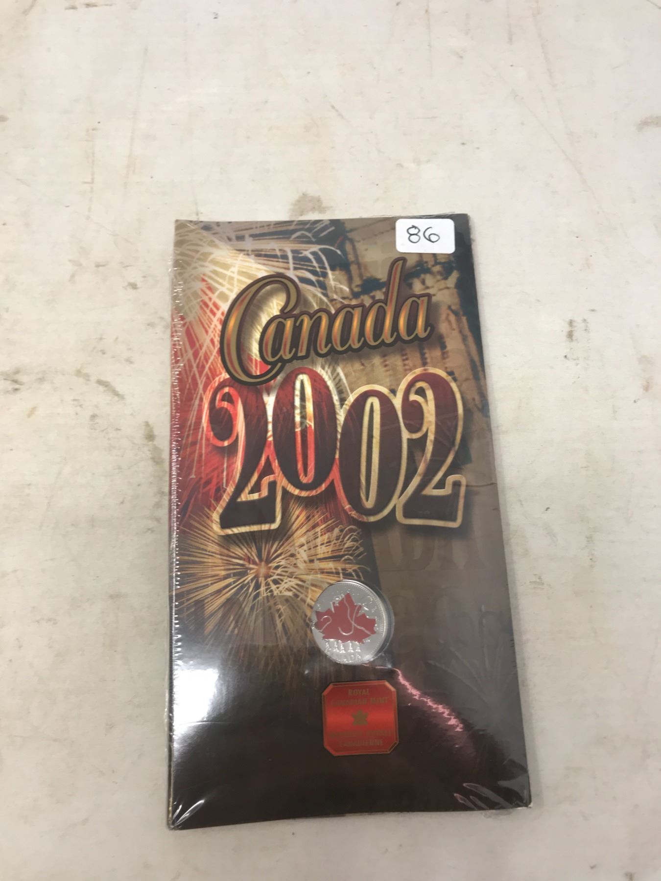 1952-2002P COLOURIZED 25 CENTS. COLOURIZED MAPLE LEAF IN UNOPENED FOLDER OF ISSUE.
