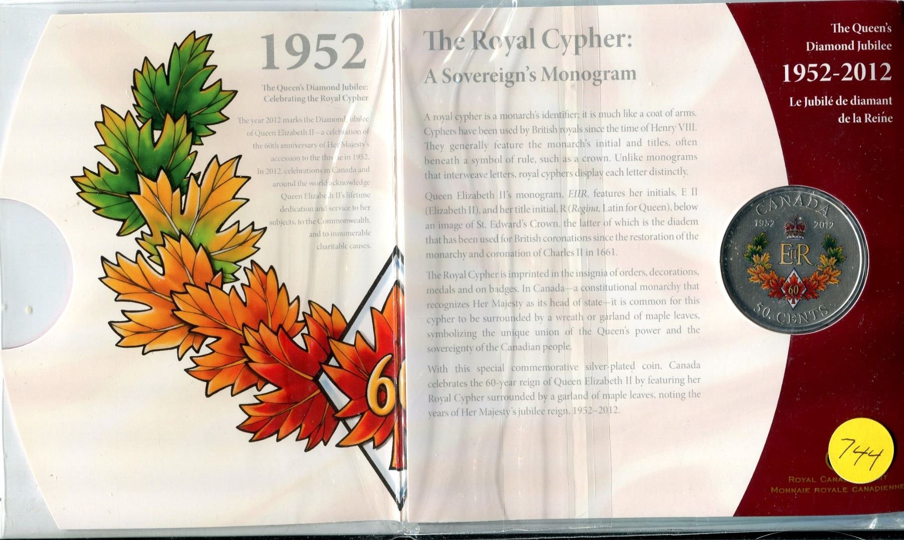 1952-2012 - the queen's diamond jubilee - the royal cypher fifty cent coin
