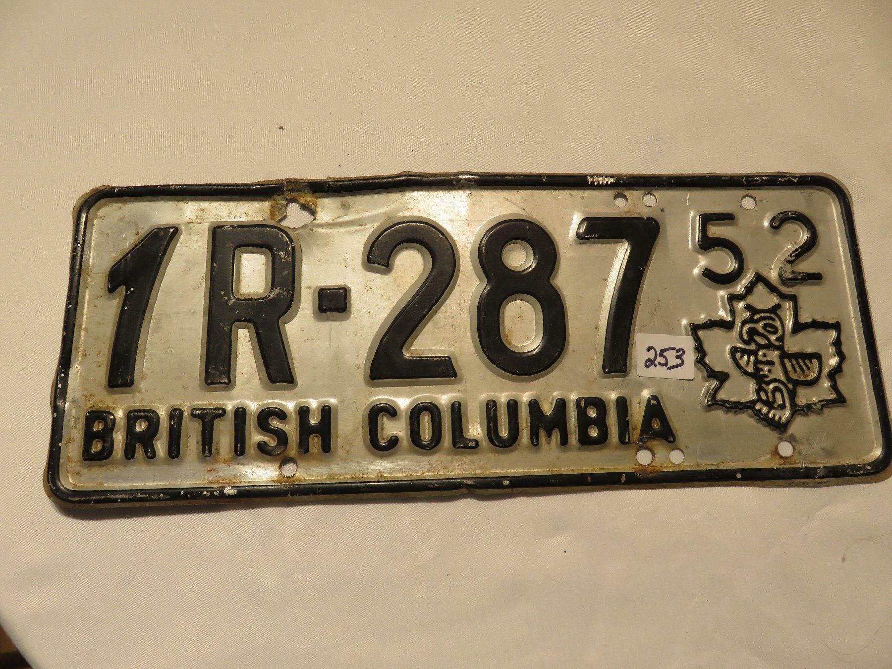 1952 BRITISH COLUMBIA LICENSE PLATE