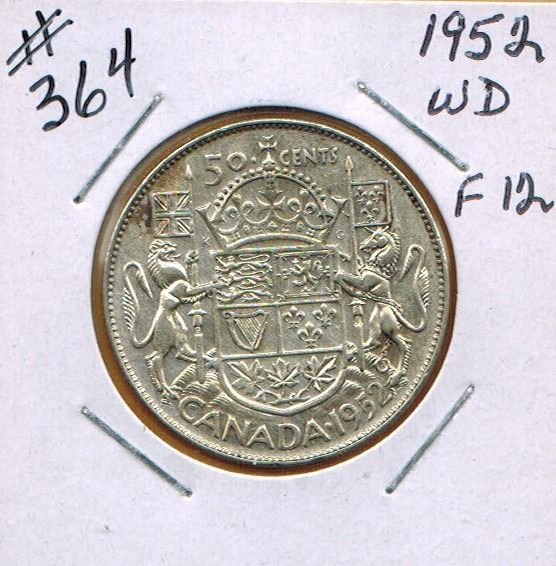1952 CANADIAN SILVER 50 CENT COIN - Wide Date
