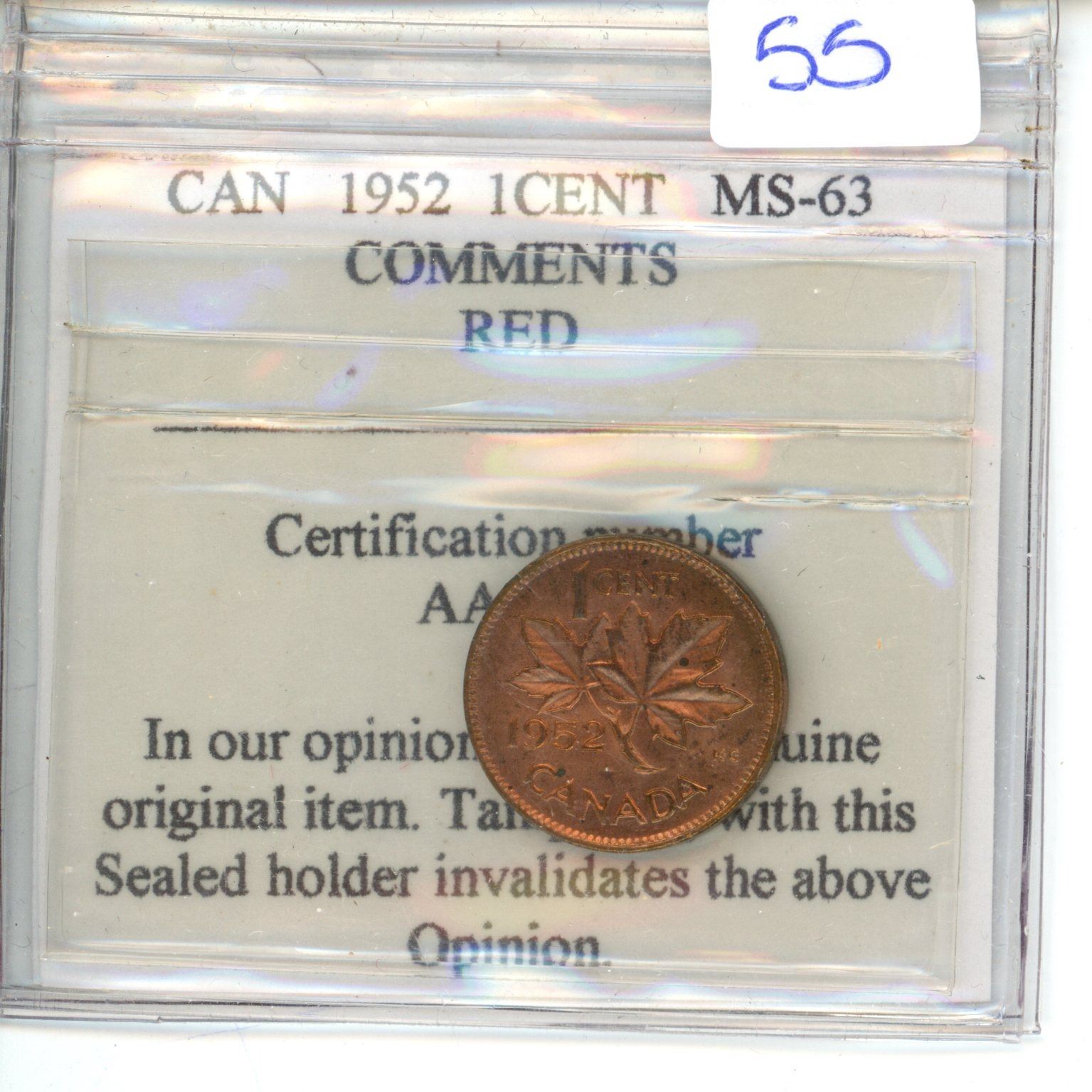 1952 Canada 1¢; MS 63 RD (PPGS # AA-198)