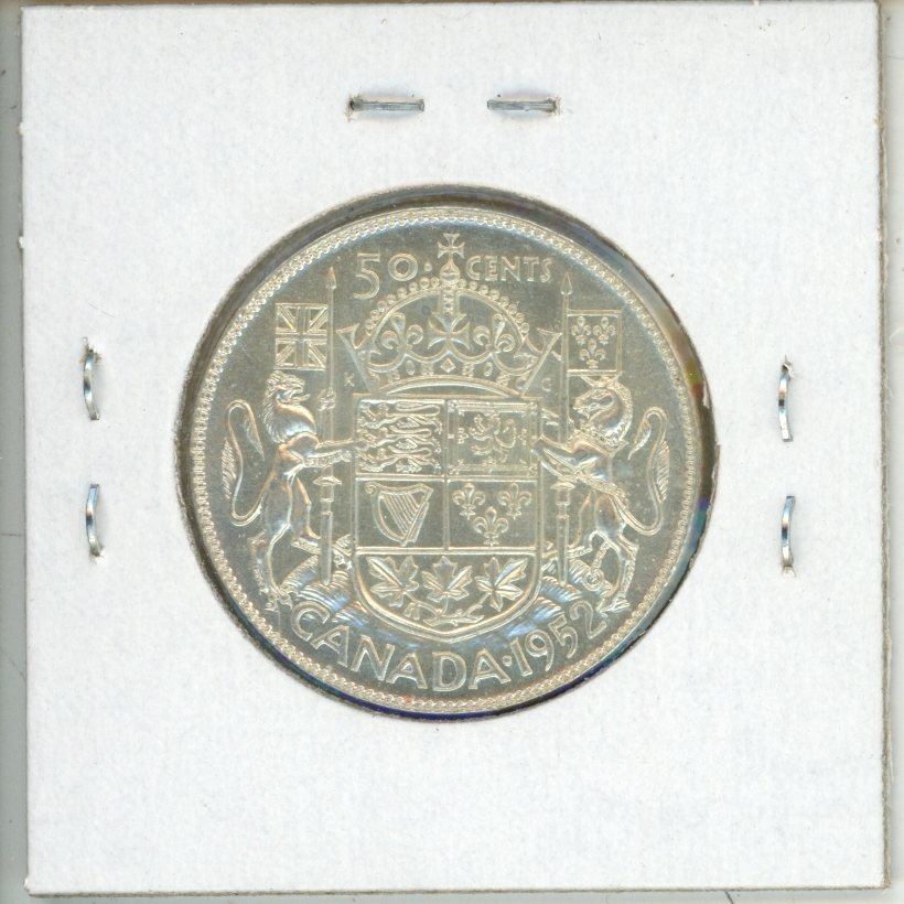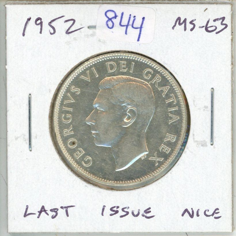 1952 Canadian Silver 50 Cents. Last issue for King George VI. MS-63. Nice.