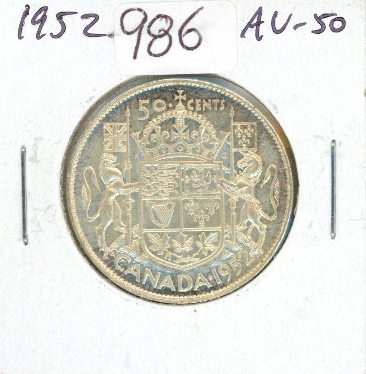 1952 Silver 50 Cents. Last silver 50 cents minted for King George VI. AU-50. Nice.