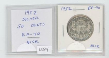 1952 Silver 50 Cents. The last silver 50 cents issued for George VI. EF-40. Nice.