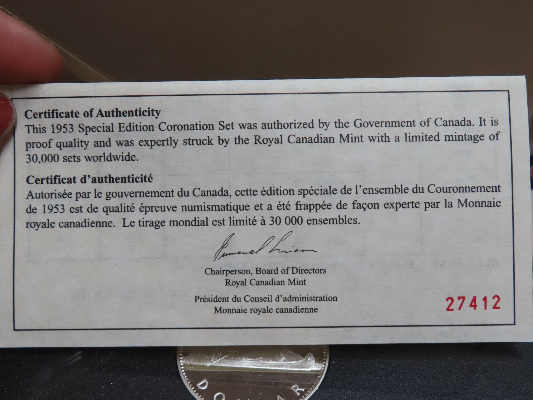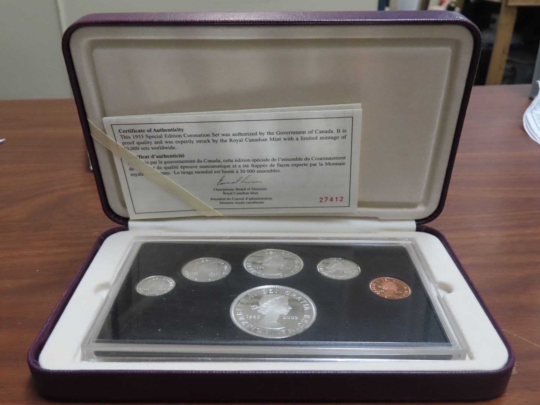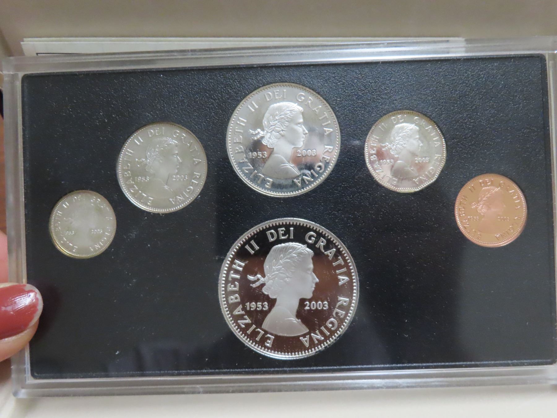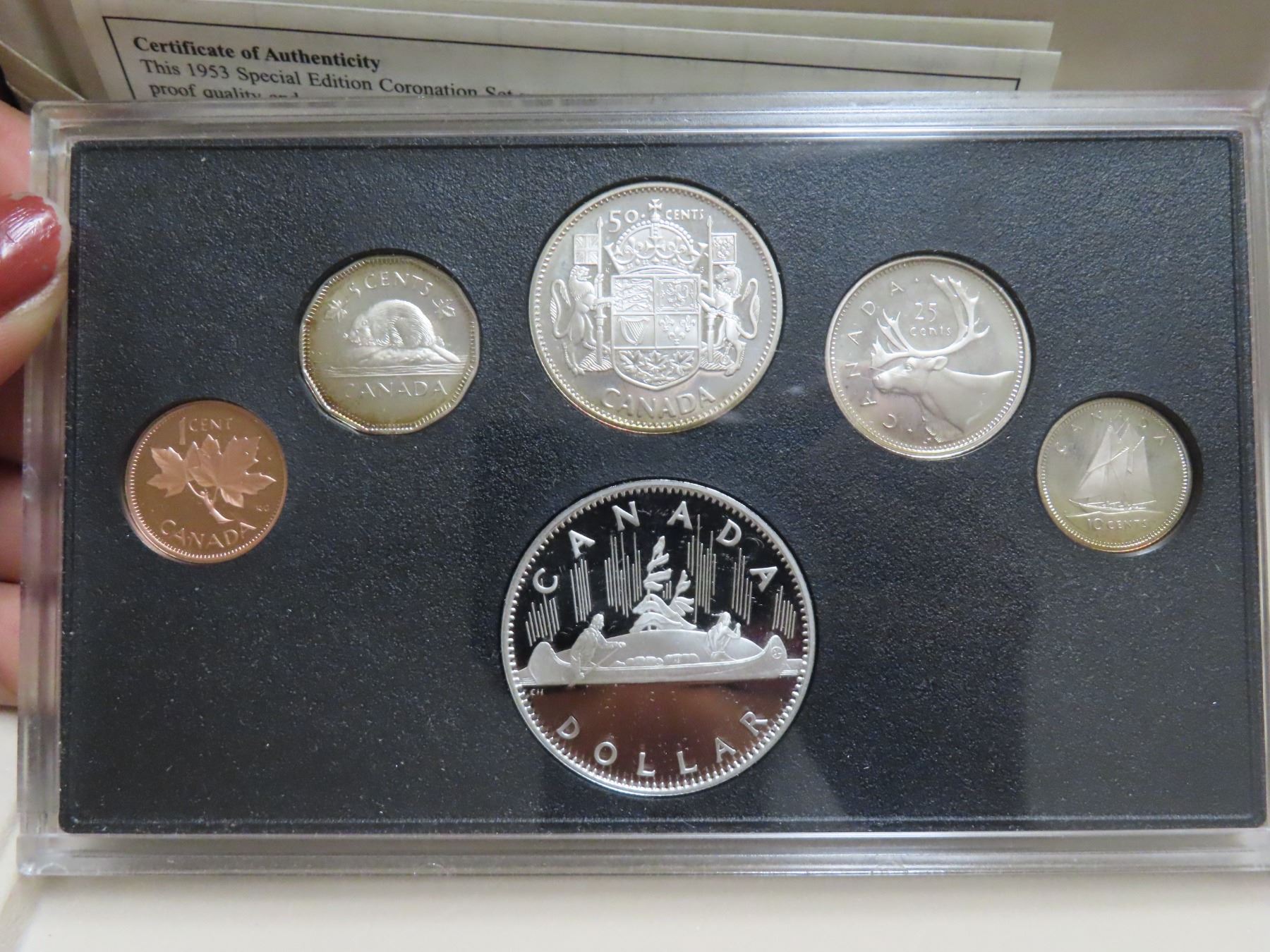 1953-2003 canada special edition coronation year set: fine silver dollar & sterling silver 50 , 25, 10 and 5 cents COA
