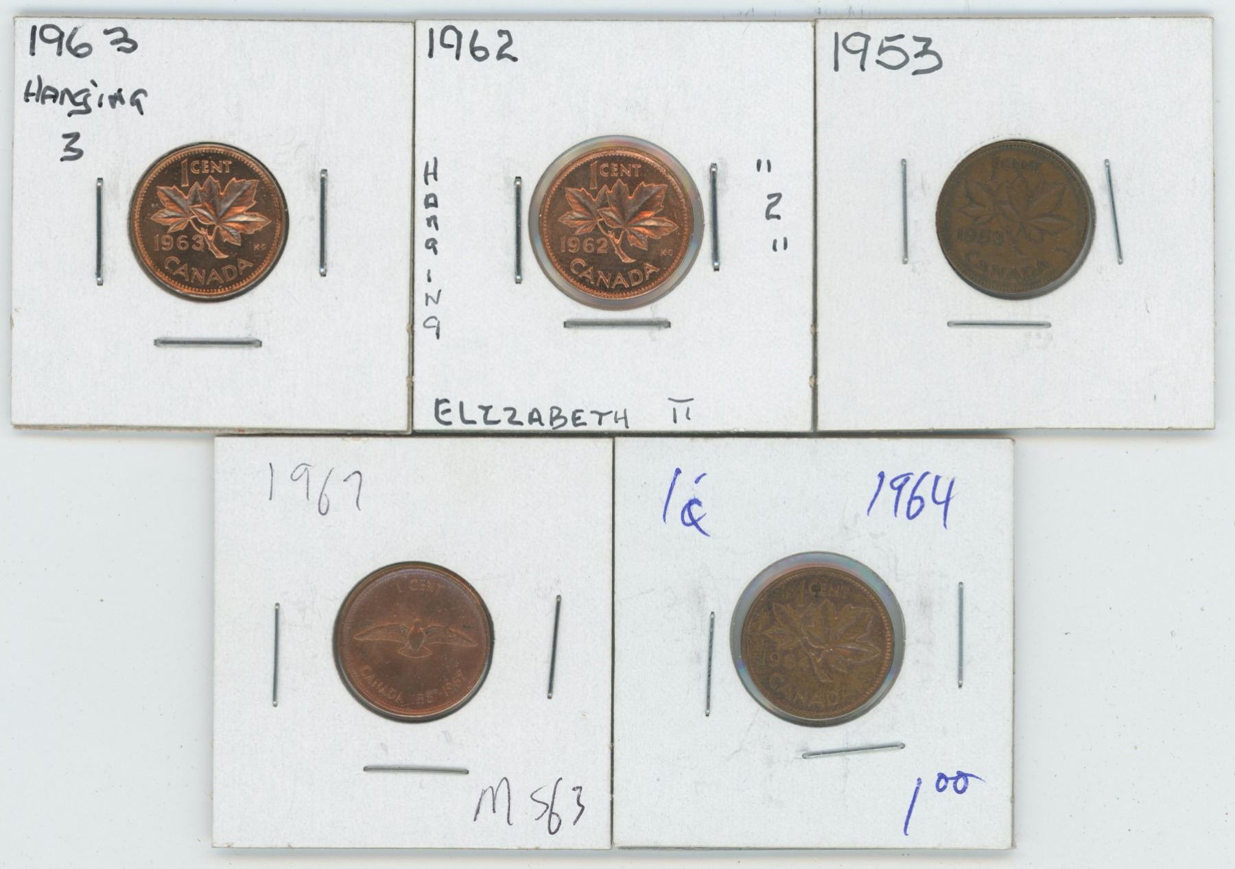 1953 & 62 & 63 & 64 & 67 Canadian 1 Cent Coins