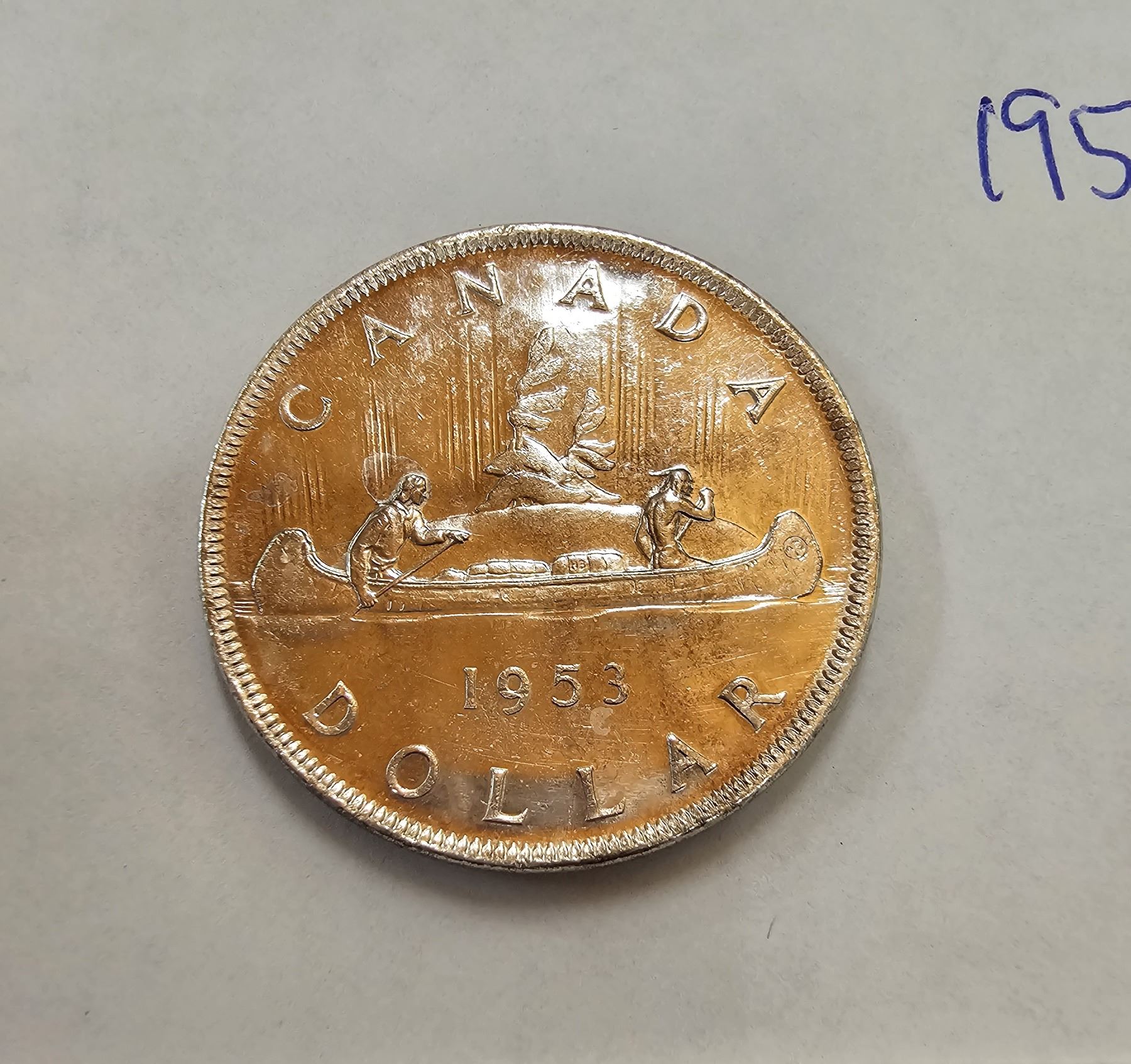 1953 Canada silver dollar $1.00 NSF (no shoulder fold)
