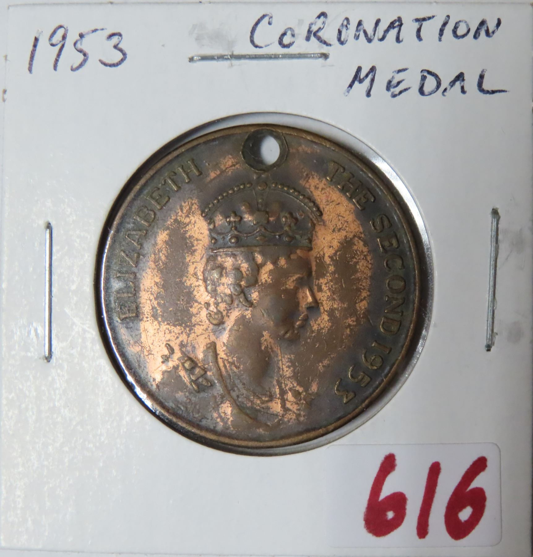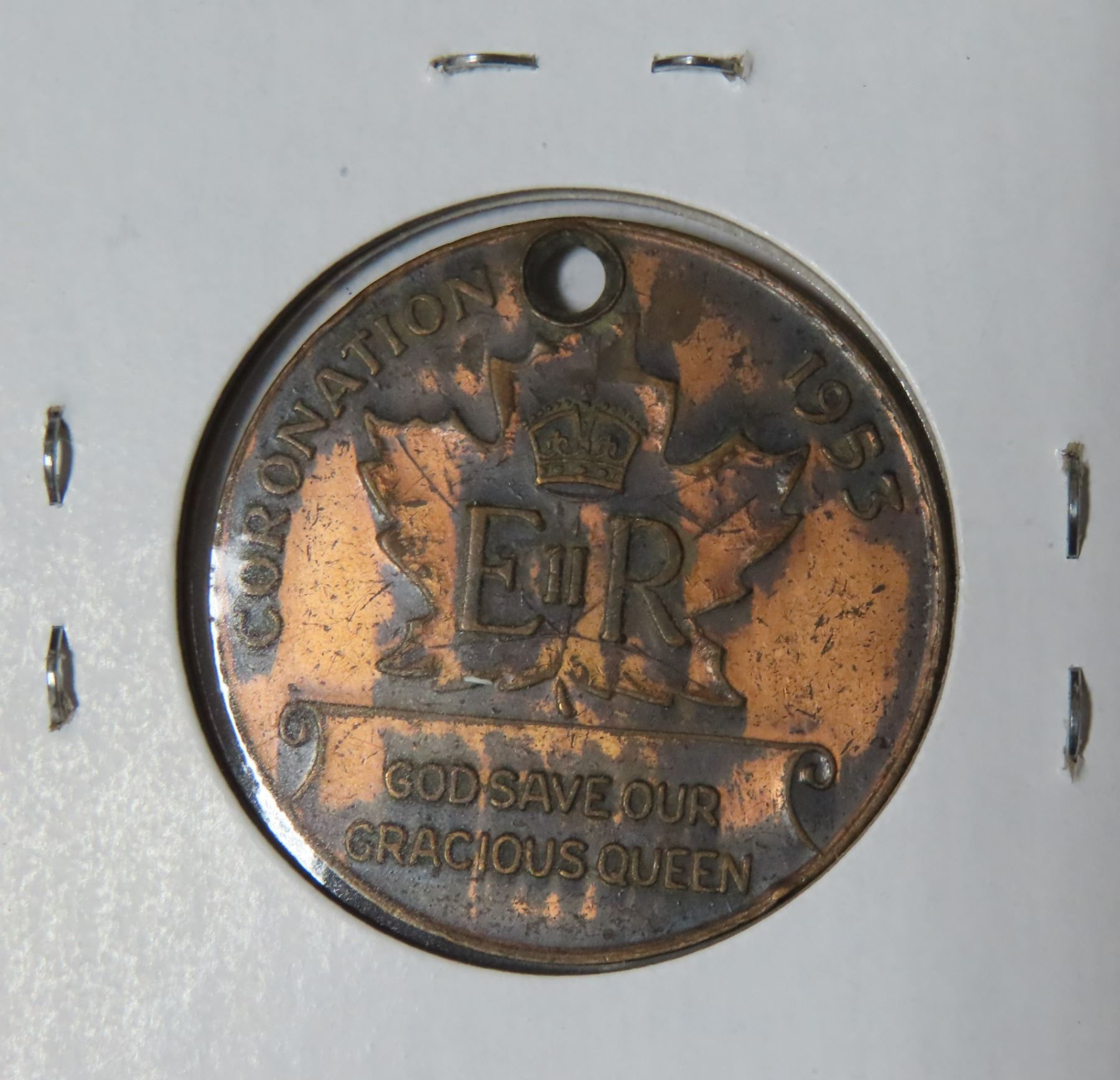 1953 Coronation Medal of Queen Elizabeth II. God Save Our Gracious Queen. Holed.
