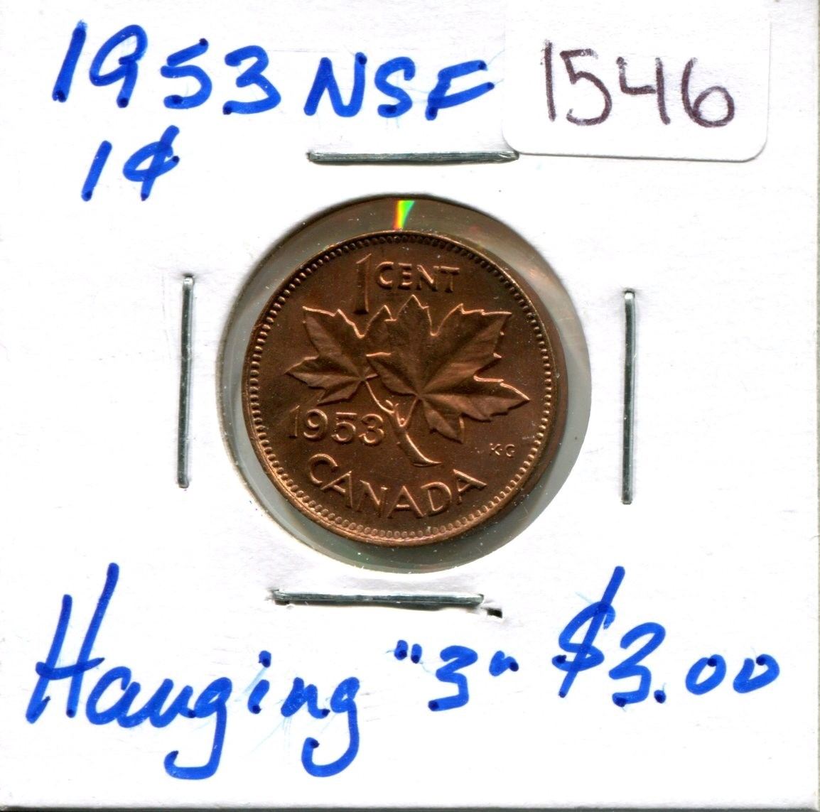 1953 (NSF) Canadian One Cent Coin (Hanging 3)