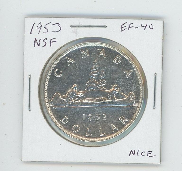 1953 No Shoulder Fold Silver Dollar. The first issue of Elizabeth II. EF-40. Nice.