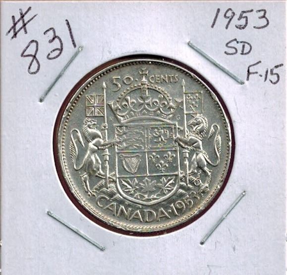 1953 SD CANADIAN SILVER 50 CENT COIN