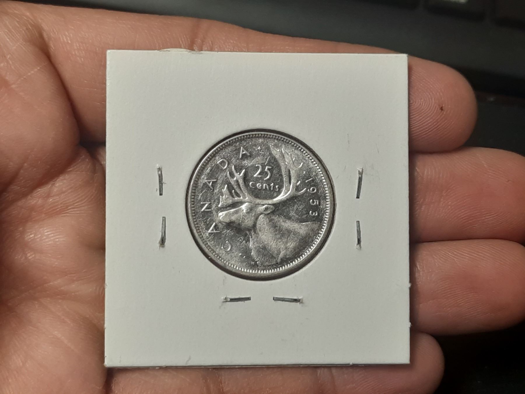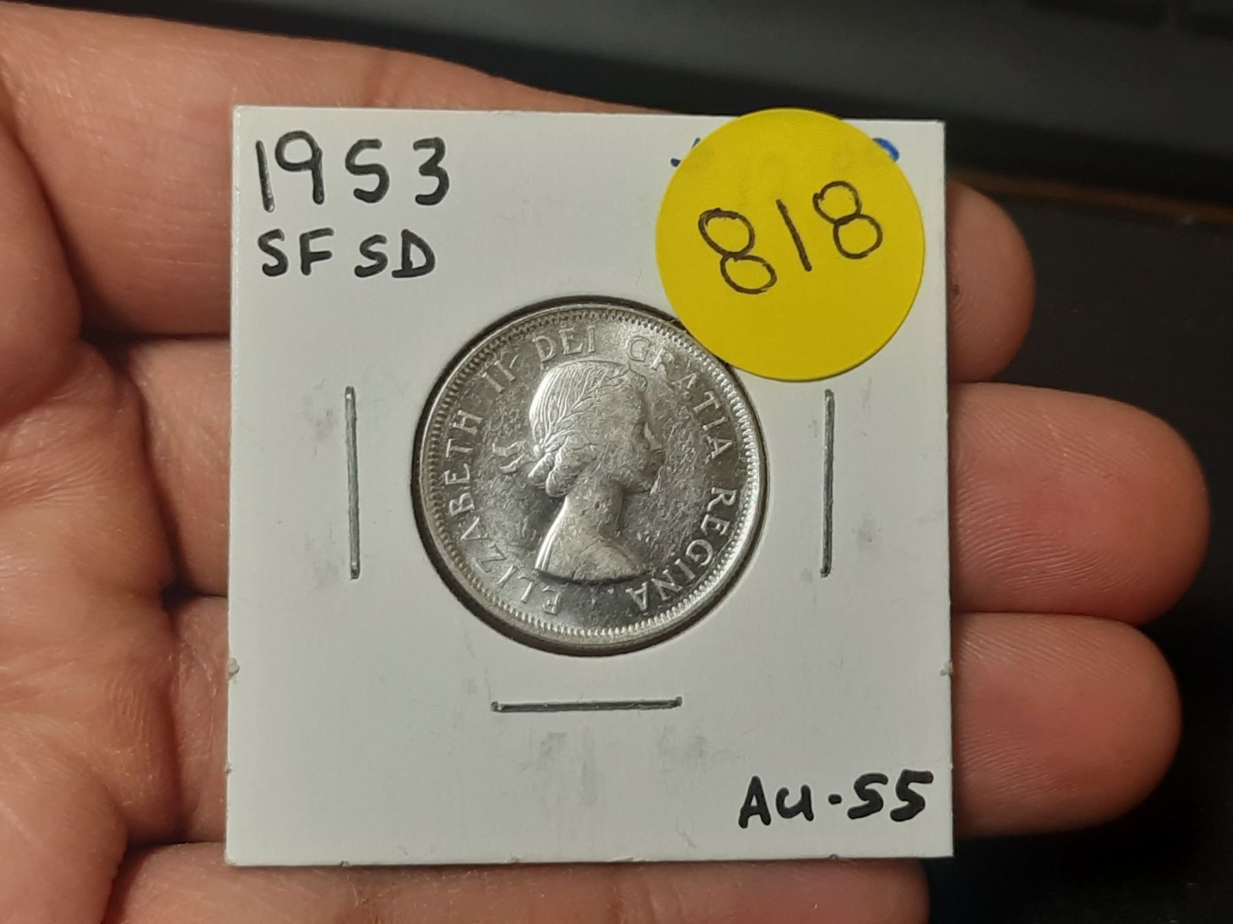 1953 SF SD, AU-55 Canadian Silver Twenty Five Cents
