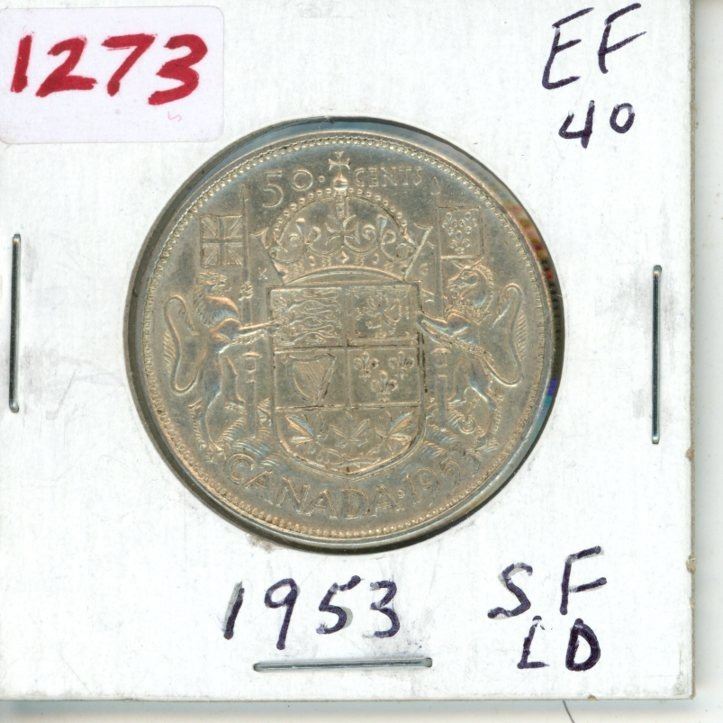 1953 SFLD Canadian Silver 50 cent coin - Queen Elizabeth