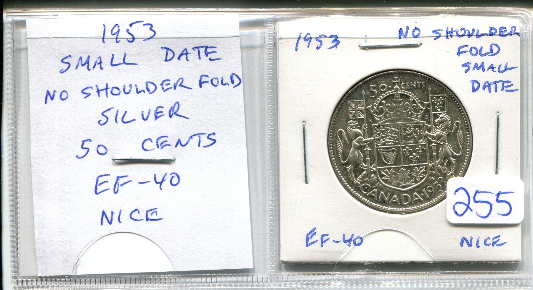 1953 Small Date No Shoulder Fold Silver 50 cents. EF-40. Nice.