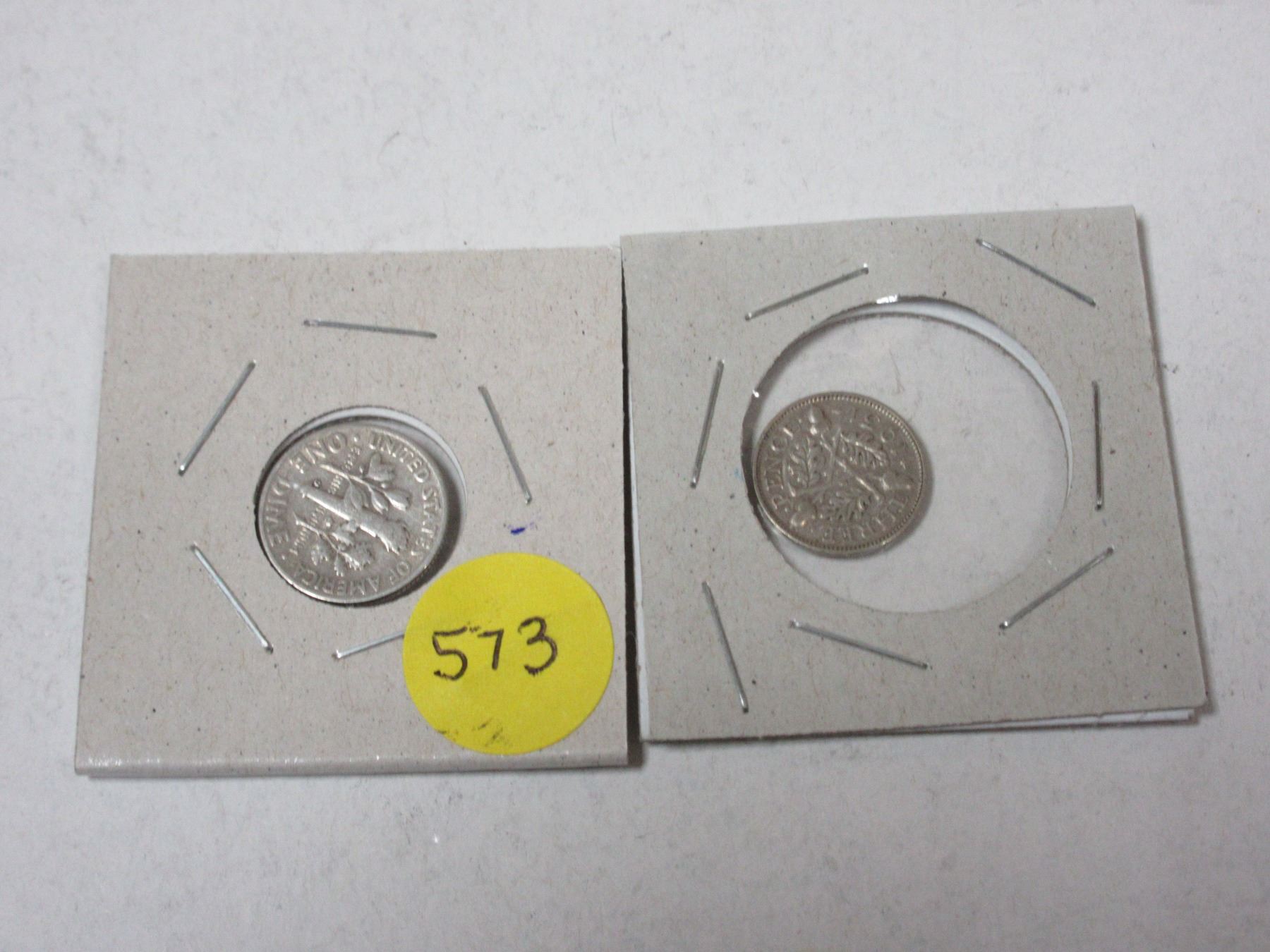 1953 U.S.A Silver 10 Cents and 1931 Great Britain Three Pence - 50% sterling silver (0.500 fine)