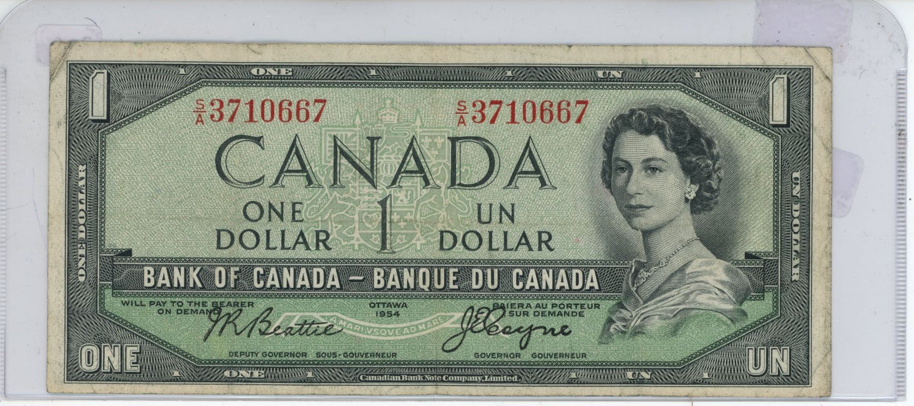 1954 1 Dollar Bill Beattie/Coyne S/A3710667; Devil's Face