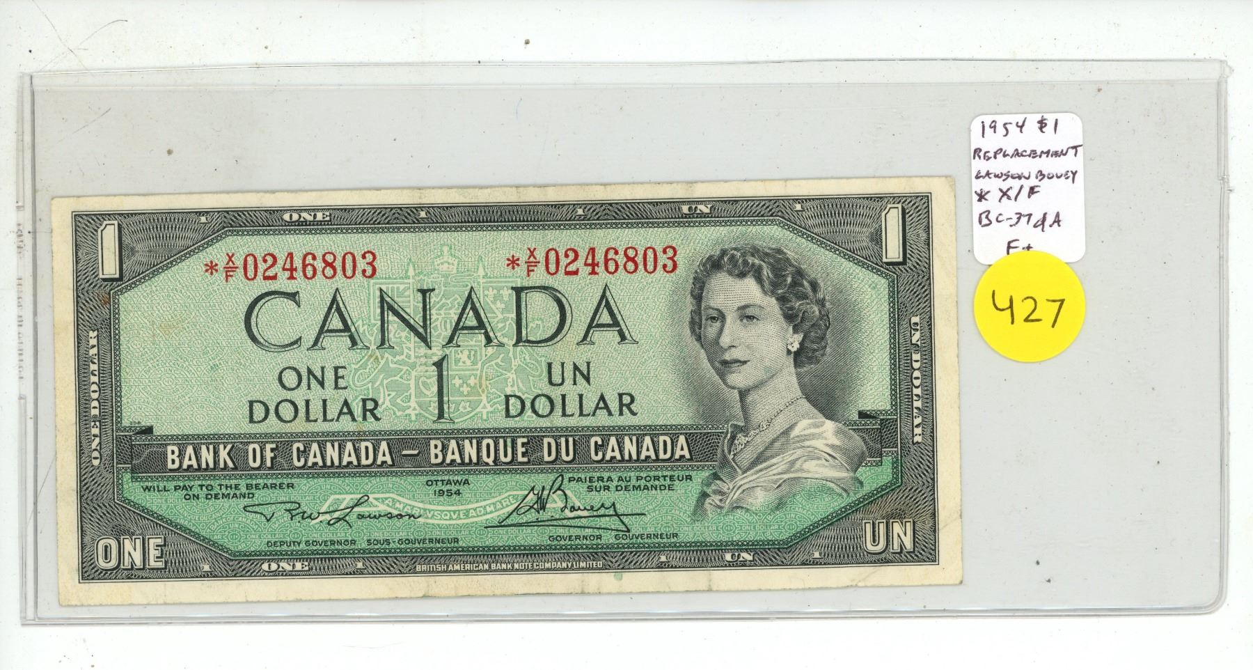 1954 $1 Replacement note. Lawson-Bouey signatures. *X/F Replacement Prefix. BC-37da. Fine15.