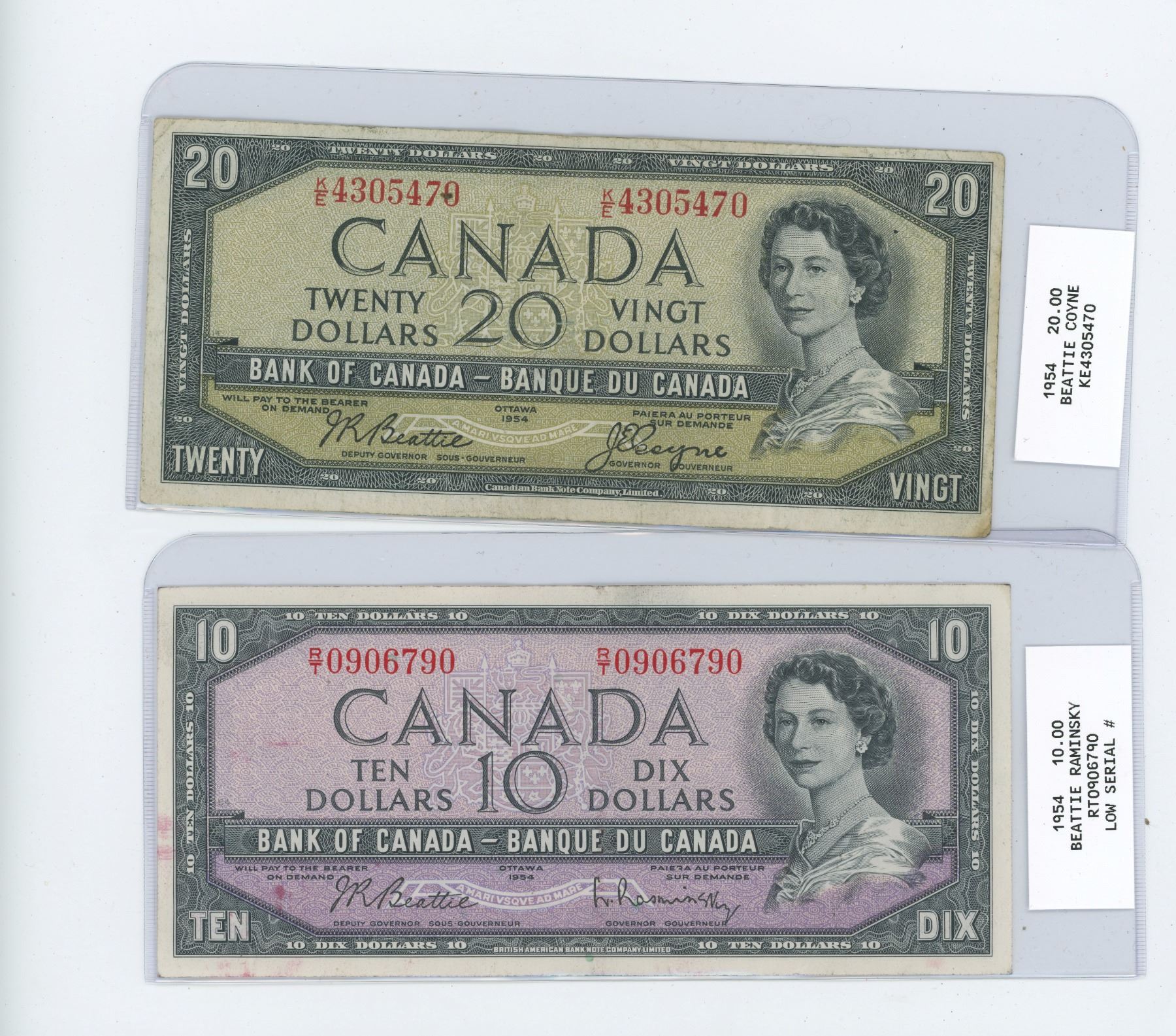 1954 10 DOLLAR BILL (LOW SERIAL #) & 1954 20 DOLLAR BILL