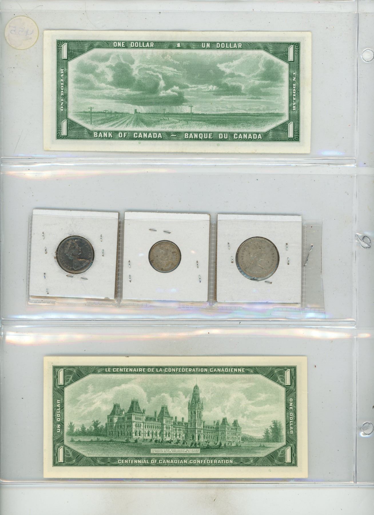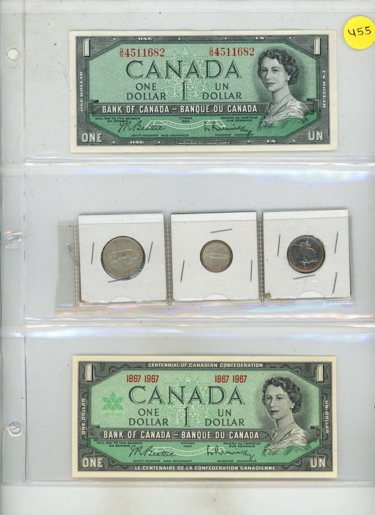1954, 1967 Canada One Dollar & 1967 Canada Silver 25 Cents, Silver 10 Cents and 5 Cents.
