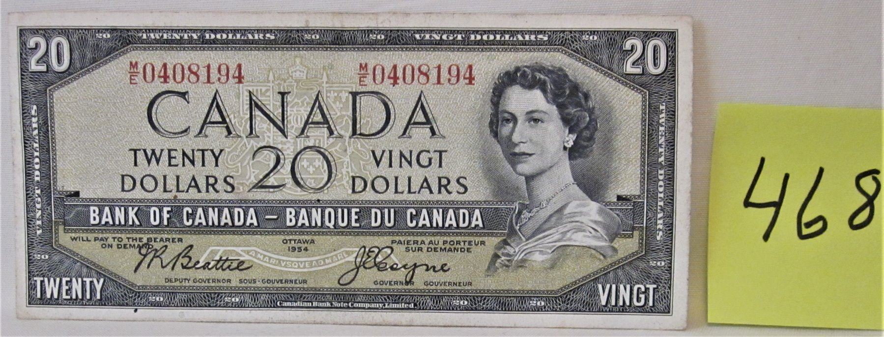 1954 $20 BILL DEVIL'S FACE? NOTE- BEATTIE-COYNE SIGNATURES SERIAL #0408194