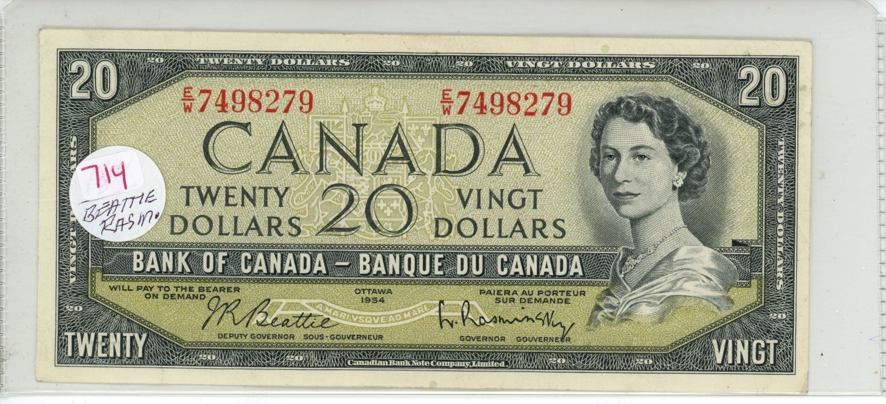 1954 $20 Canadian bill- Beattie/ Rasminksy