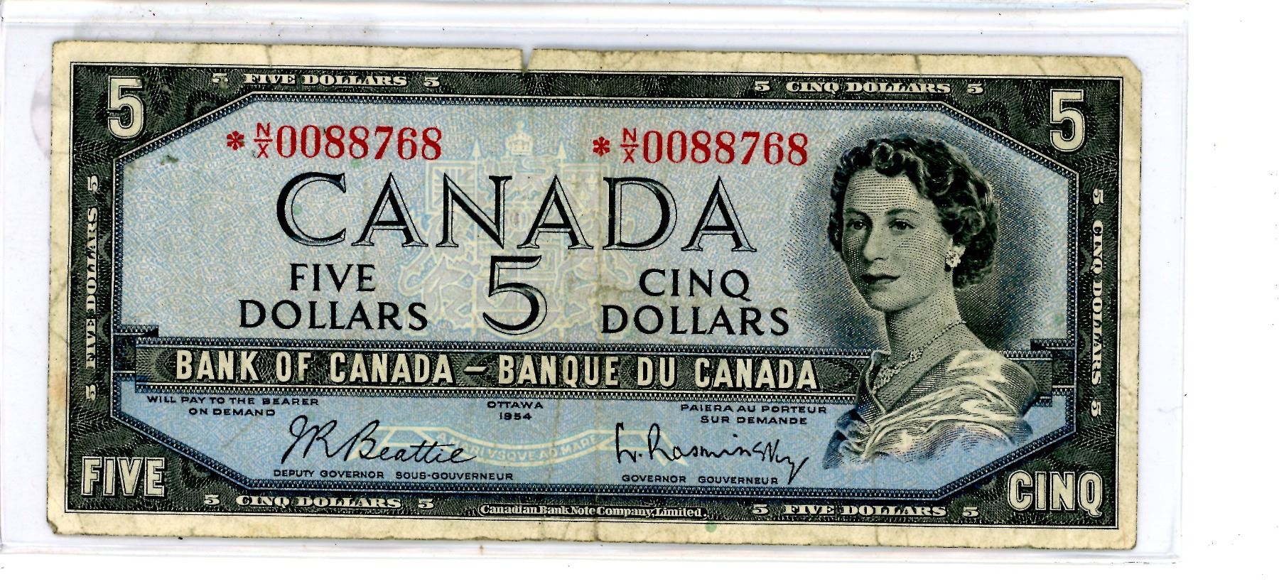 1954 Asterisk Bank of Canada Five Dollar bill