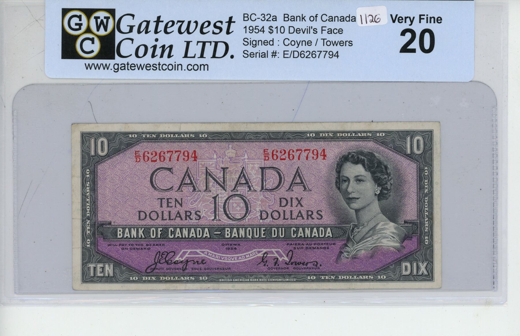 1954 BC-32a 10 dollar, Coyne-Towers, Devil's Face, E/D6267794 VF-20