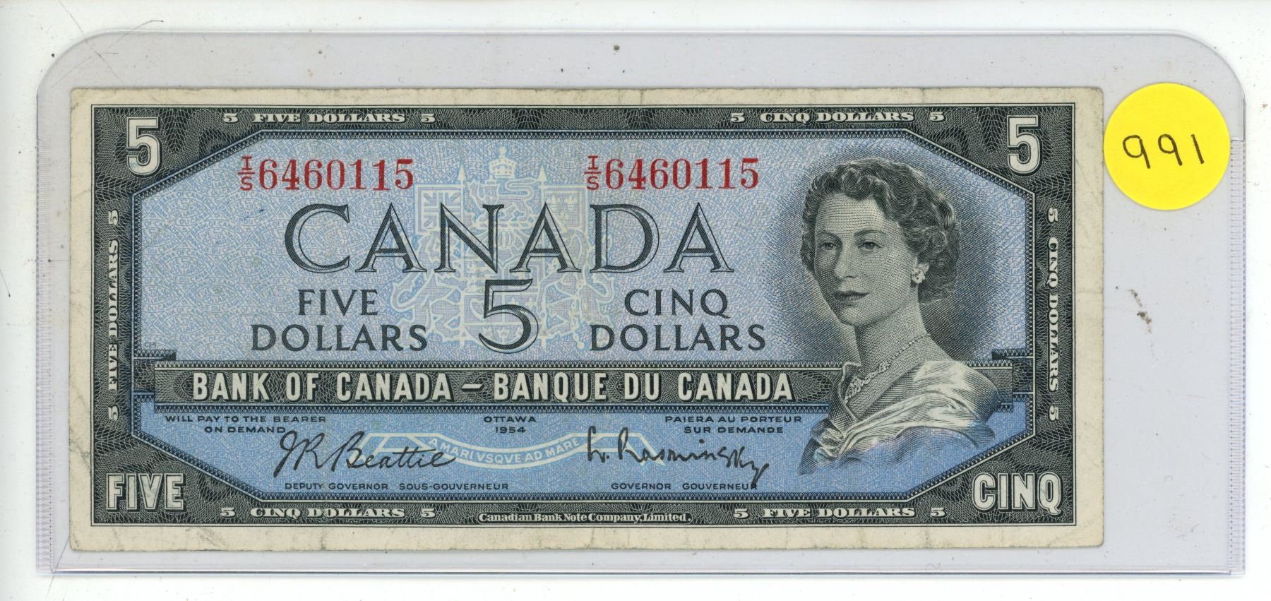 1954 Bank Of Canada Five Dollar Bank Note