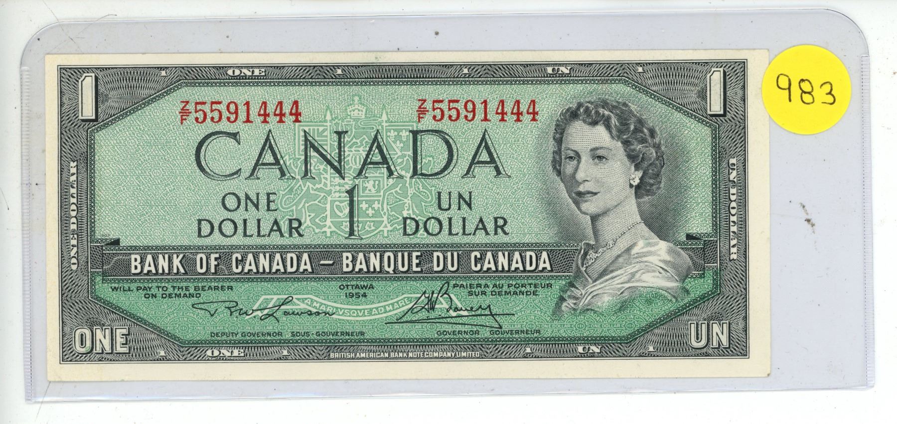 1954 Bank Of Canada One Dollar Bank Note