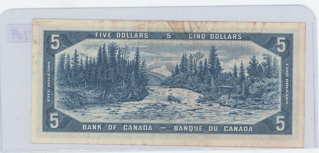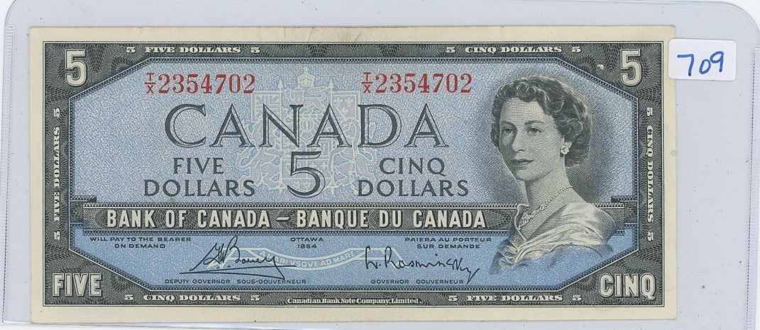 1954 Bank of Canada $5.00 Bill Sig. Bouey & Rasminsky
