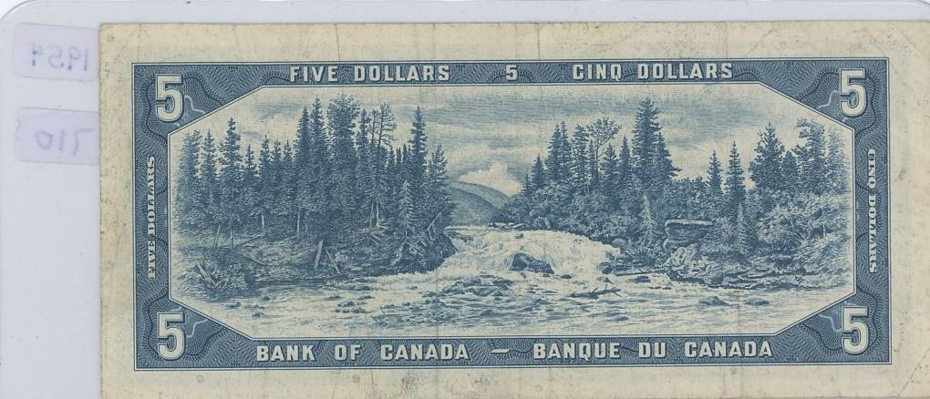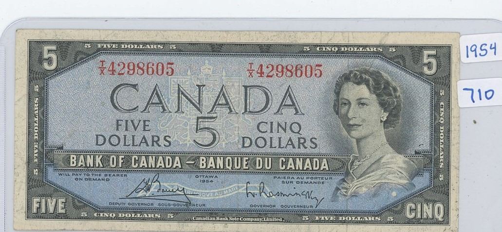 1954 Bank of Canada $5.00 Bill Sig. Bouey & Rasminsky