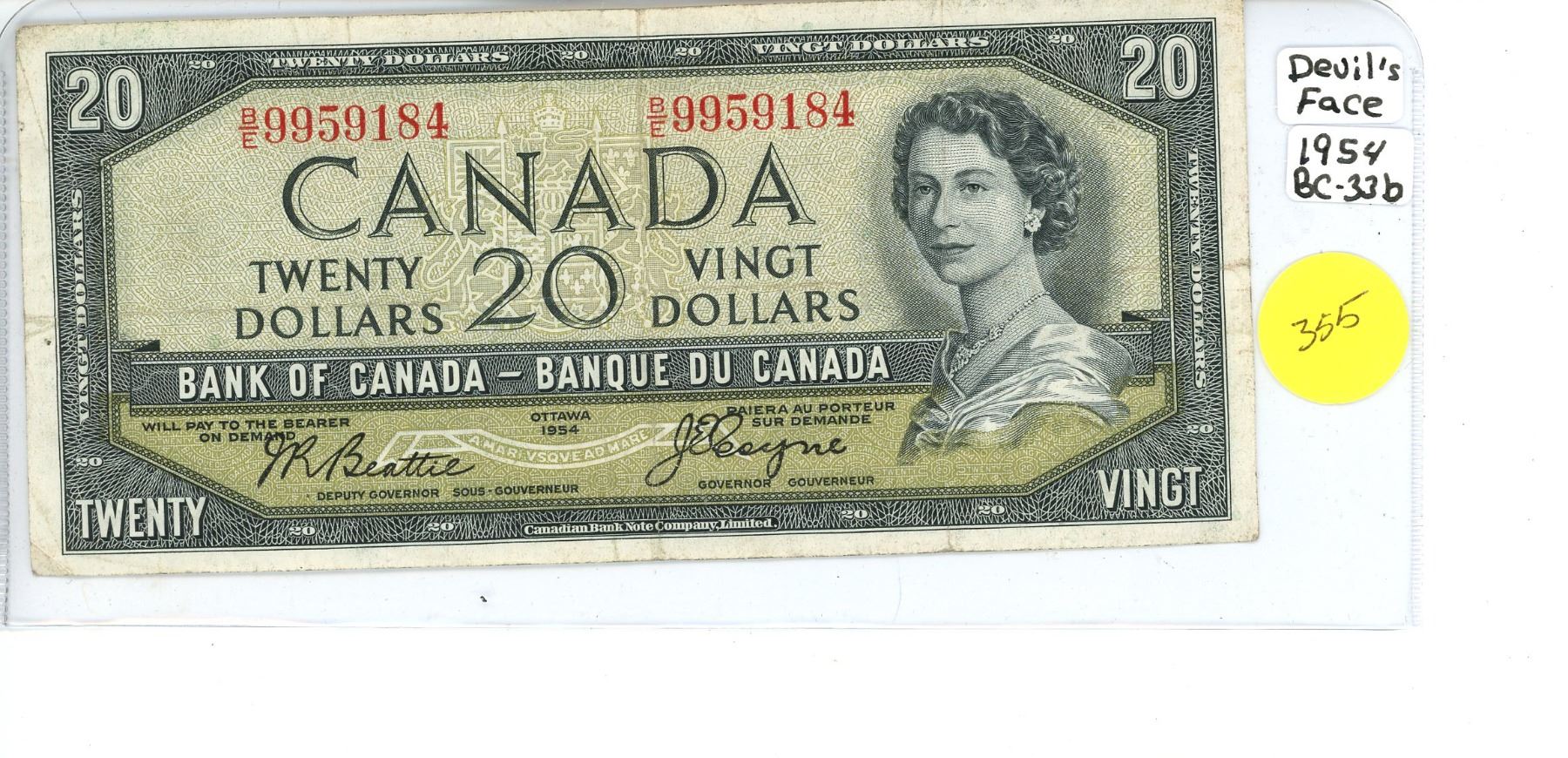 1954 Bank of Canada Twenty Dollar "DEVIL'S FACE"