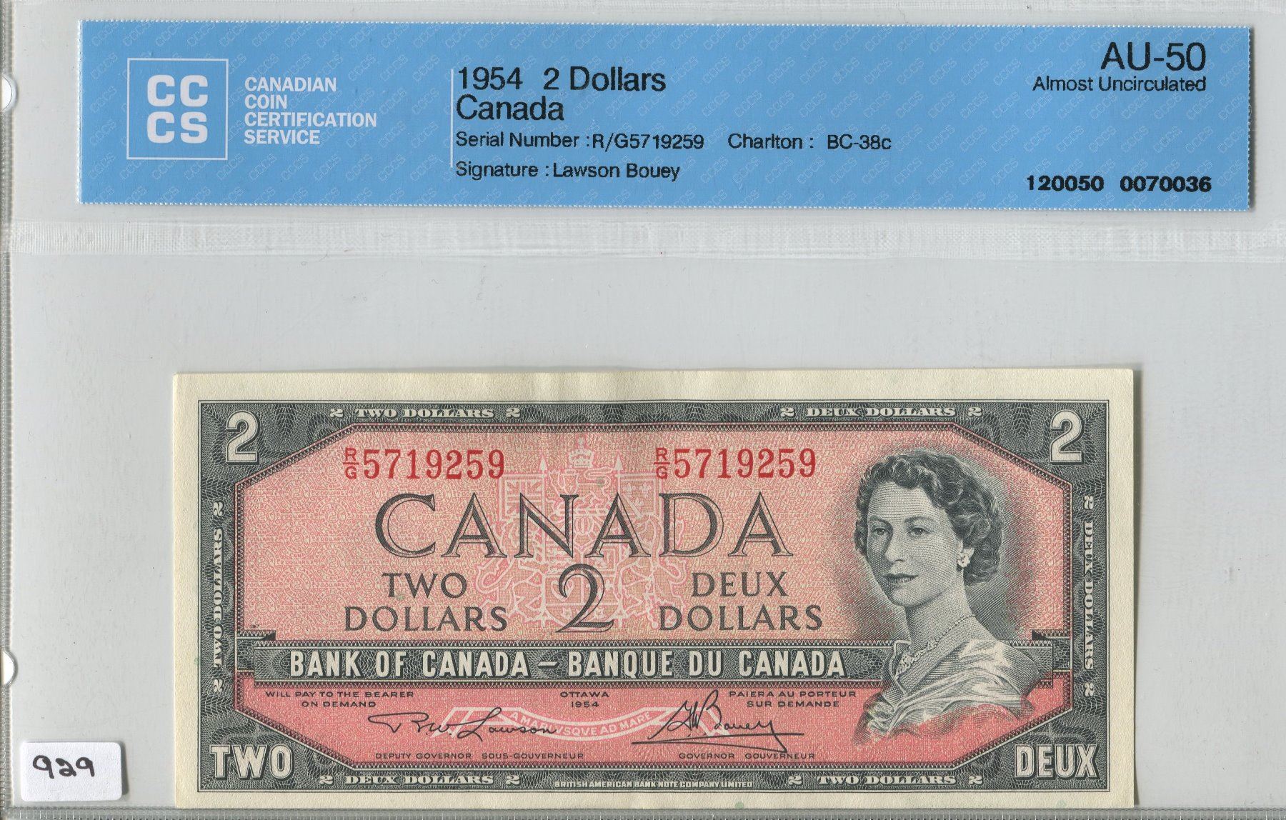 1954 CNDN 2 DOLLAR BANK NOTE (CCS AU-50)