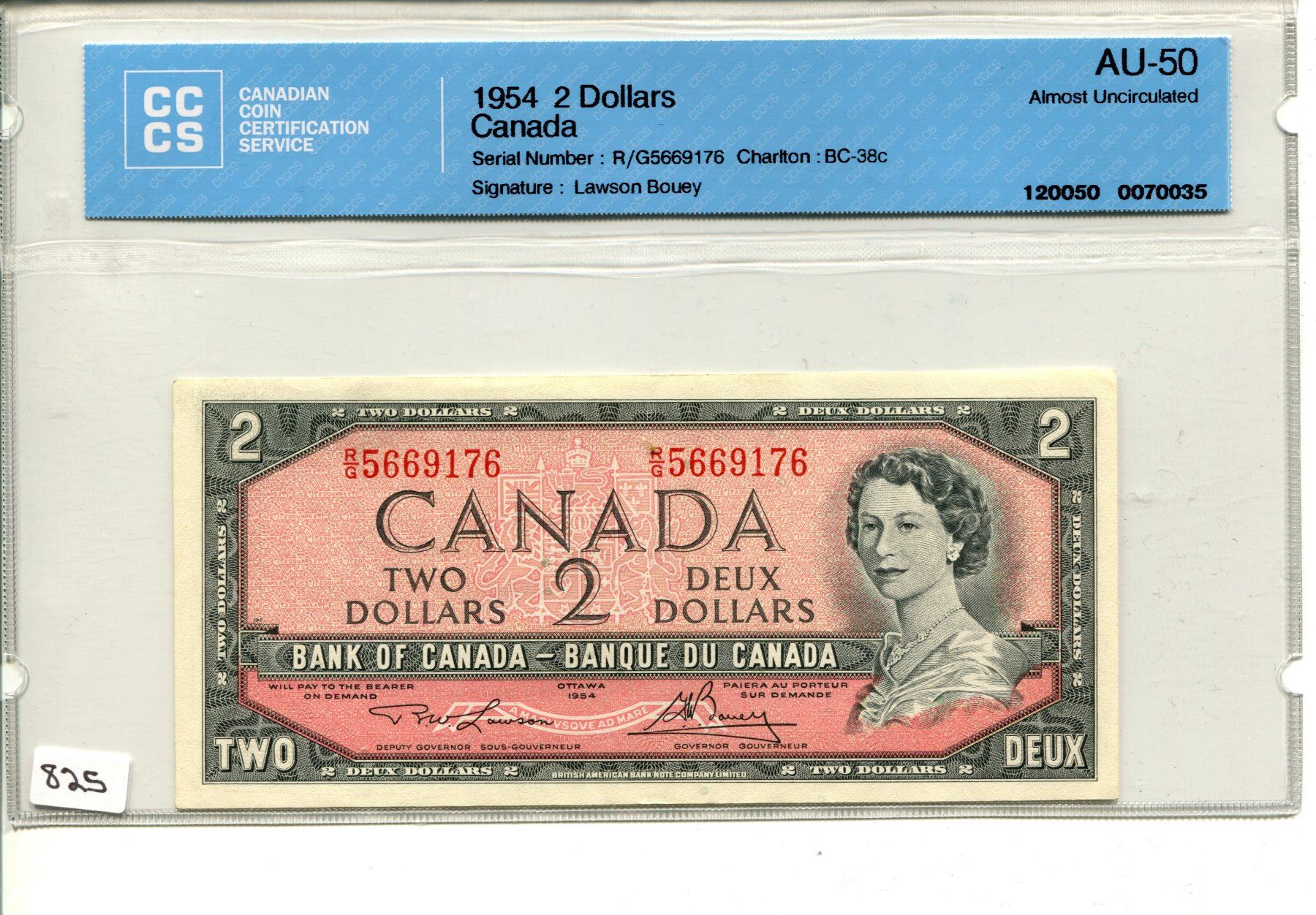 1954 CNDN BANK NOTE (2 DOLLARS) *CCCS AU-50*
