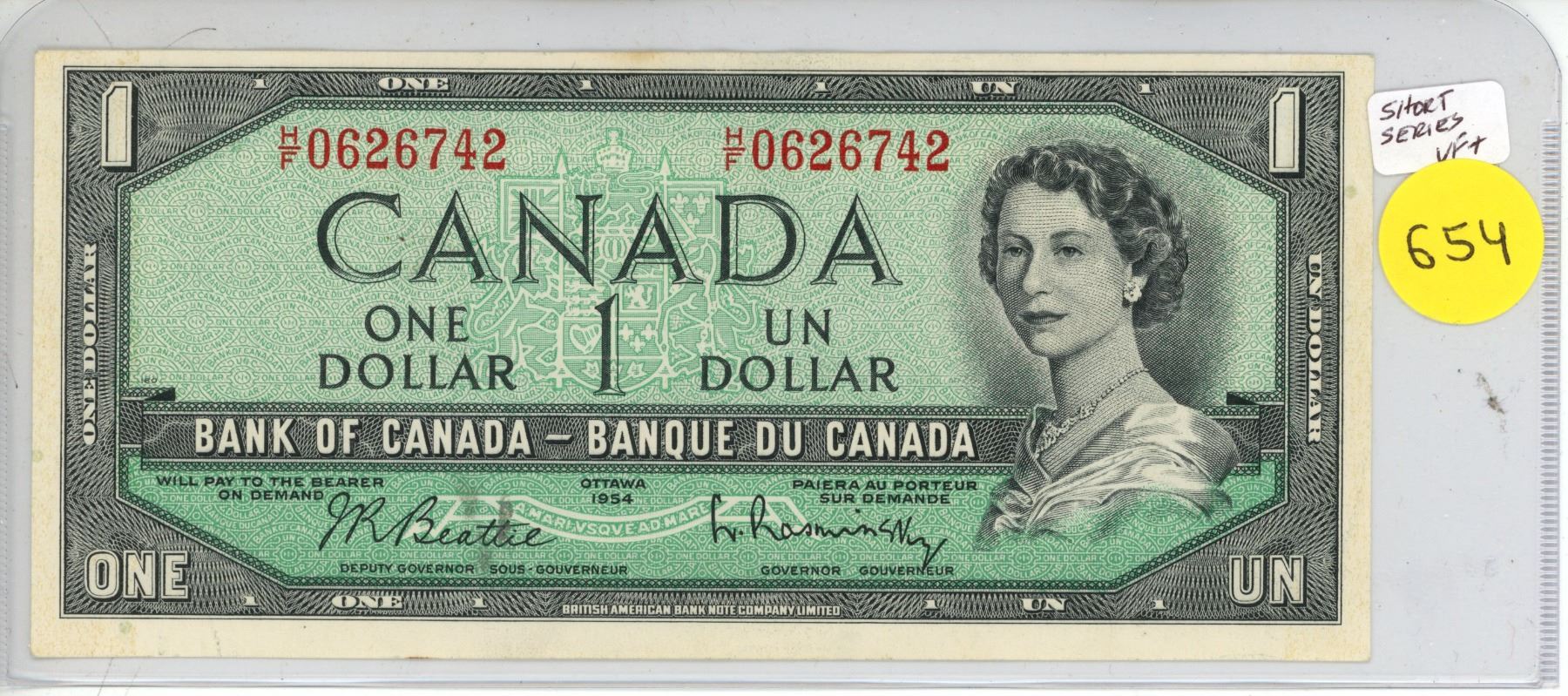 1954 Canada $1, Beattie/Rasminsky (#H/F 0626742)