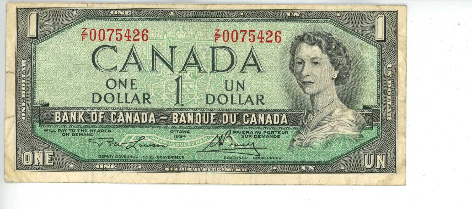 1954 Canada 1 dollar bill