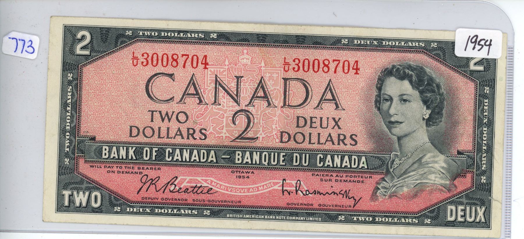 1954 Canada $2, Beattie/Rasminsky (#L/U 3008704)