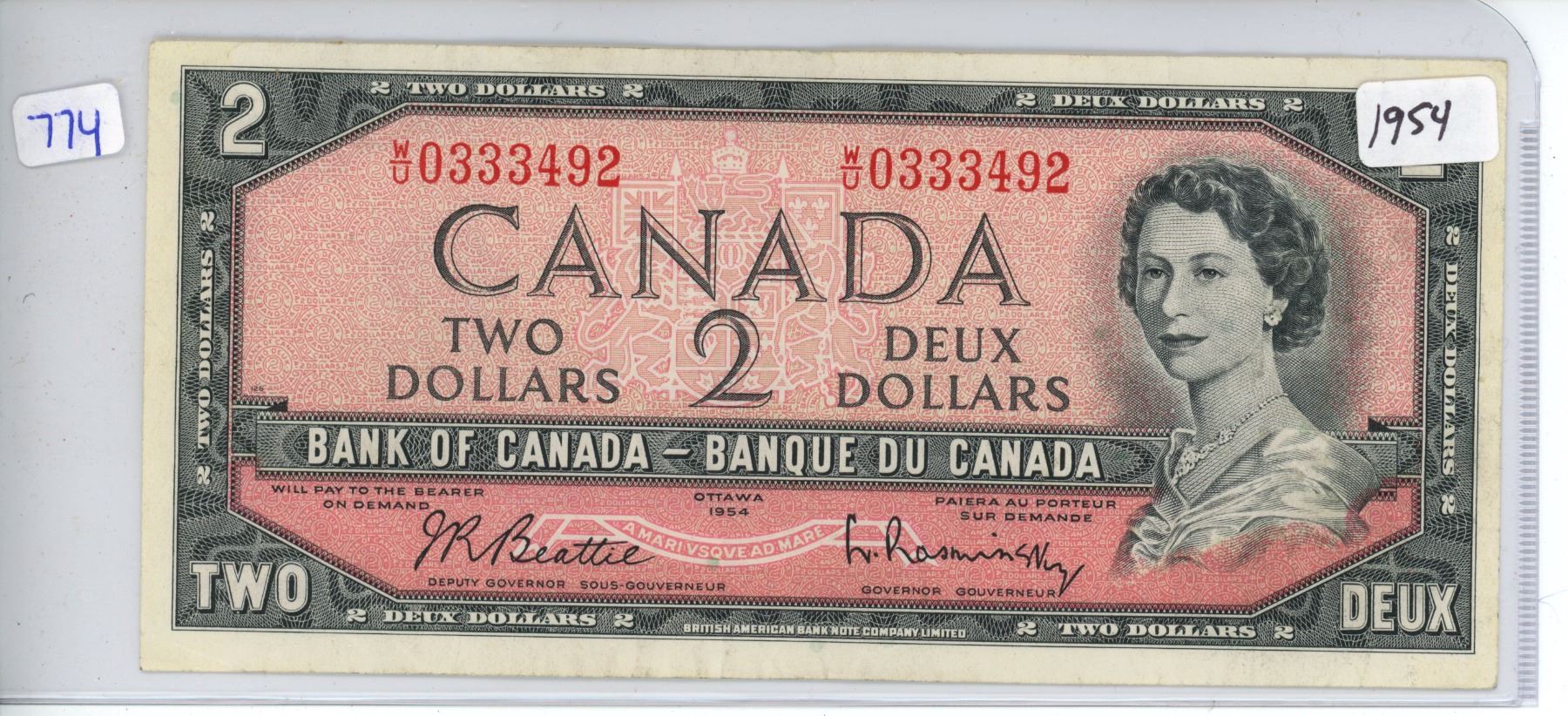1954 Canada $2, Beattie/Rasminsky (#W/U 0333492)