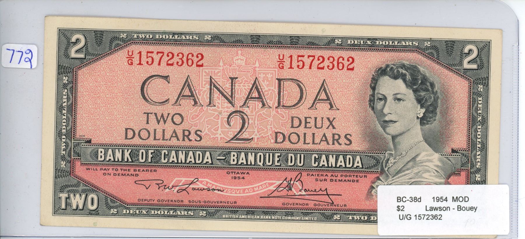 1954 Canada $2, Lawson/Bouey (#U/G 1572362)