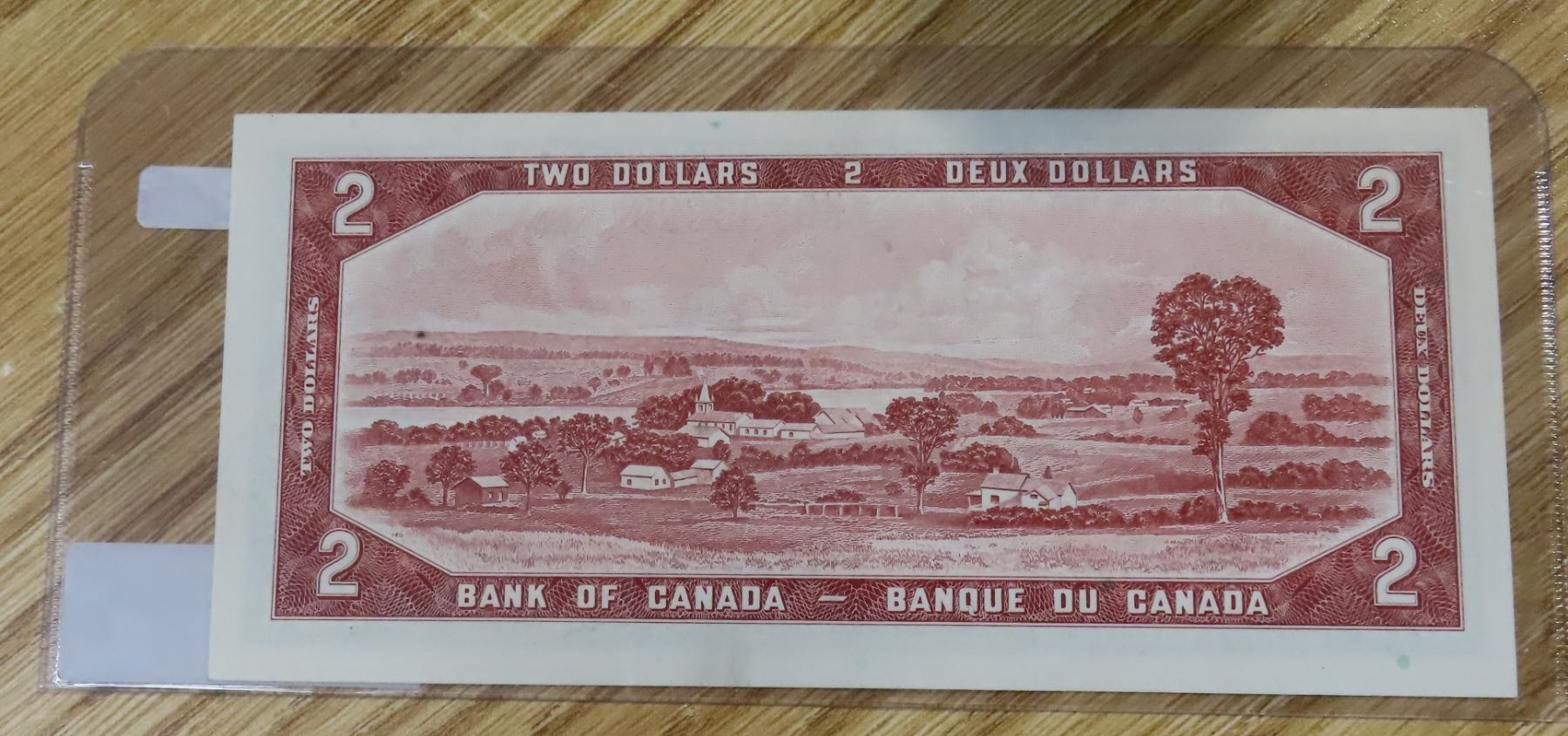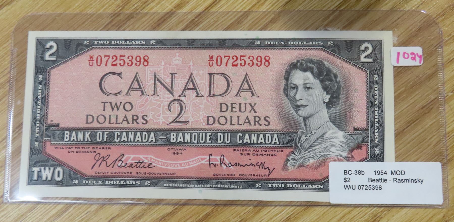 1954 Canada $2 bill: Beattie/Rasminsky (#W/U 0725398)